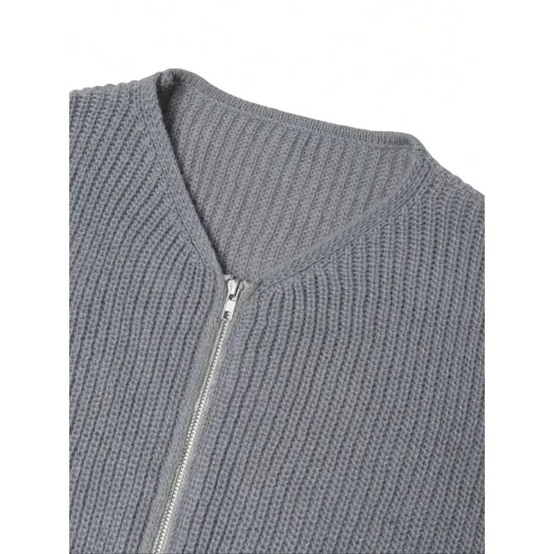 ??Loose-fitting??: This garment features a loose fit, allowing for easy layering and a breezy feel throughout the day. ??V-neck Design??: The elegant V-neck design offers a modern silhouette, enhancing both style and breathability for the wearer. ??Two Practical Pockets??: Equipped with two functional pockets, perfect for storing essentials while adding subtle practicality to the look. ??Lightweight Fabric??: Crafted from moderately thick fabric, this knitwear provides warmth without being bulky, perfect for transitional seasons. ??Unique Zipper Closure??: The special zipper closure adds a contemporary touch, offering both style and ease of wear, perfect for casual outings.