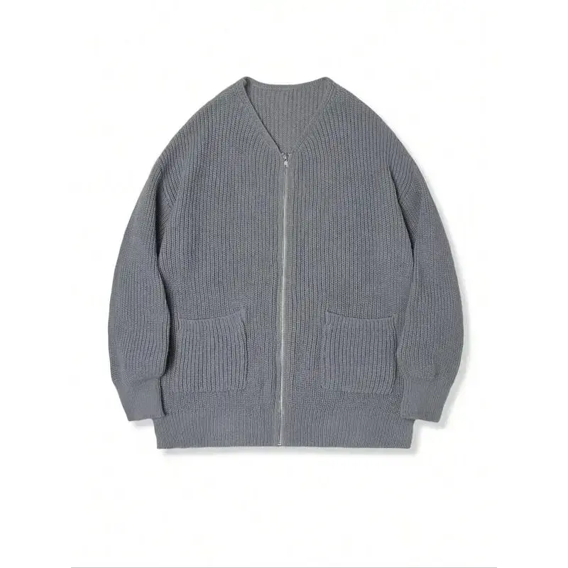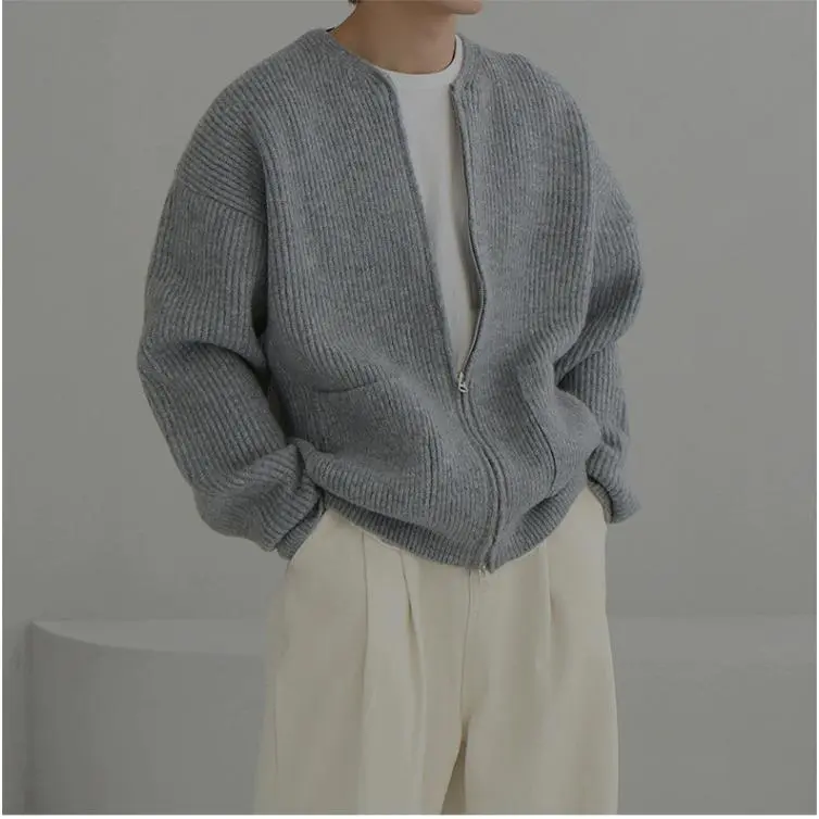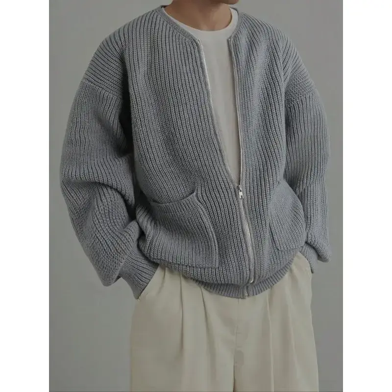 Spring Autumn Winter Men Zipper Knit Cardigan Sweater Loose Casual Lazy Simple Versatile Shoulder Pure Color Outerwear Coat