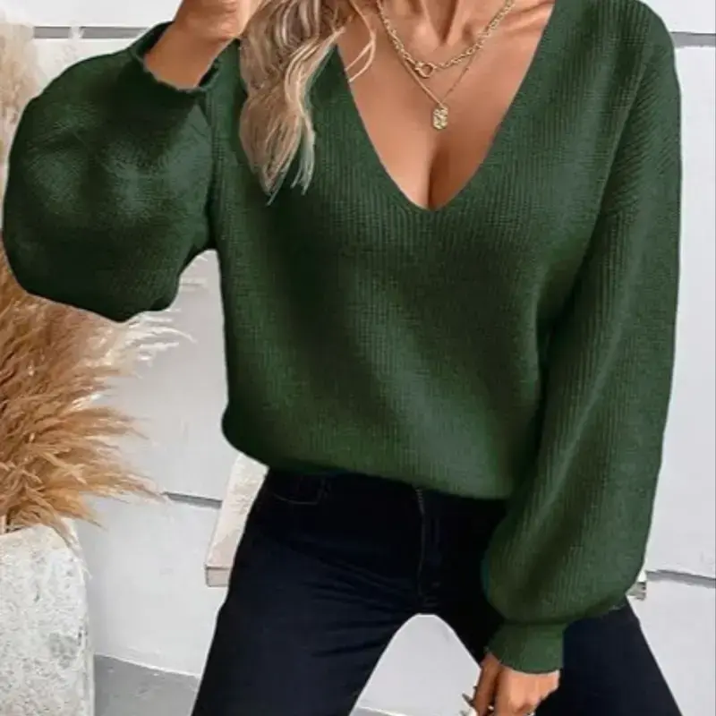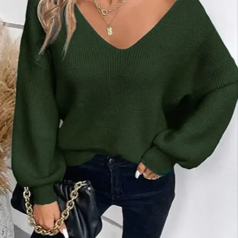 【Unique Back Detail】: Features a charming bow at the back, adding a distinctive touch to the classic V-neck silhouette. 【Warmth in Layers】: Crafted for fall and winter, this thick ribbed knit sweater provides excellent insulation for cooler days. 【Loose Fit】: Offers a relaxed fit that allows for easy movement and an airy feel while maintaining a stylish appearance. 【Plain Pattern】: The uncomplicated plain pattern makes it easy to layer with other clothing items for diverse outfits. 【Soft Knit Fabric】: Made from a cozy sweater fabric, ensuring a soft touch against the skin for all-day wear.