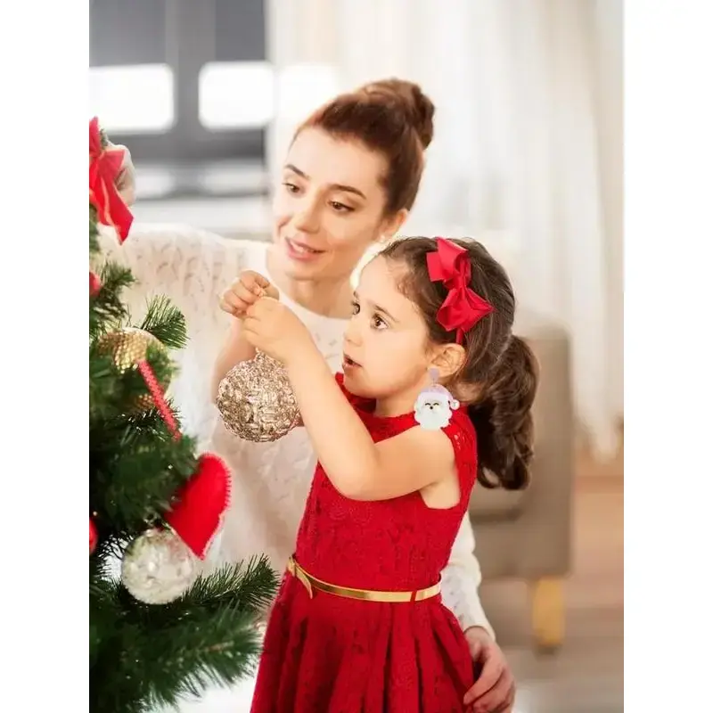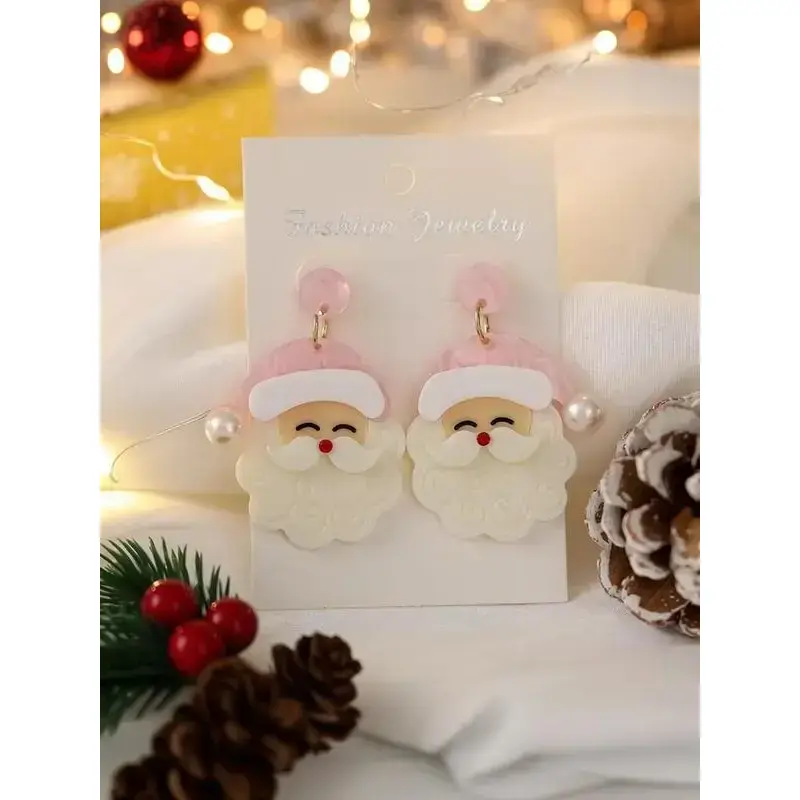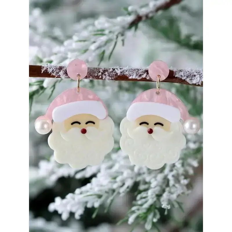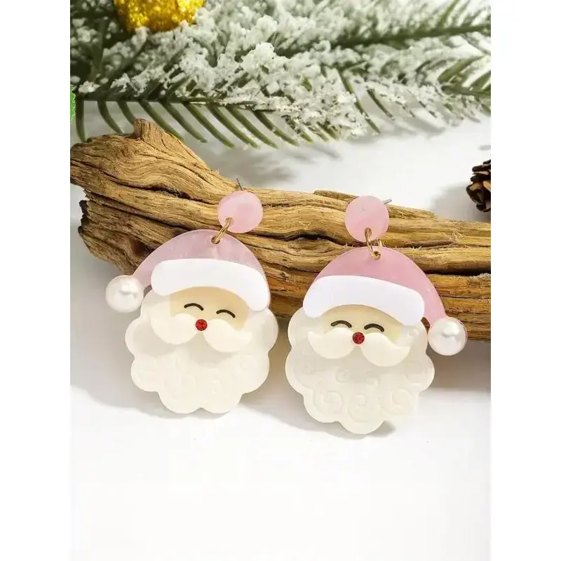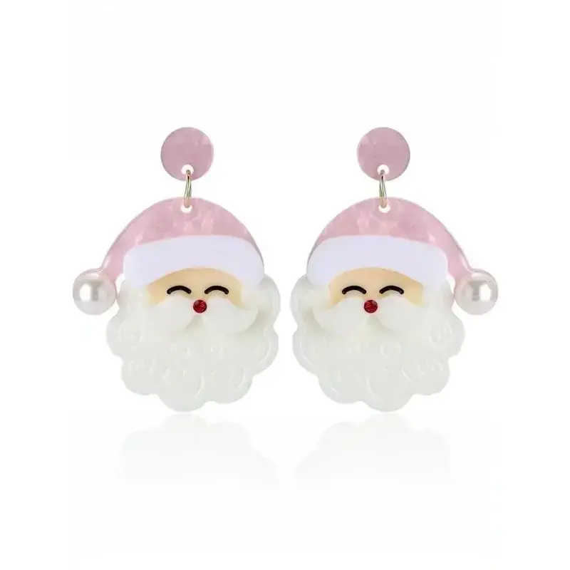Christmas Earrings for Women - Cute Pink Santa Dangle Earrings, Christmas Accessories Outfits Holiday Jewelry Xmas Gift