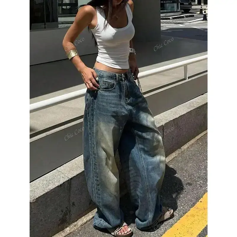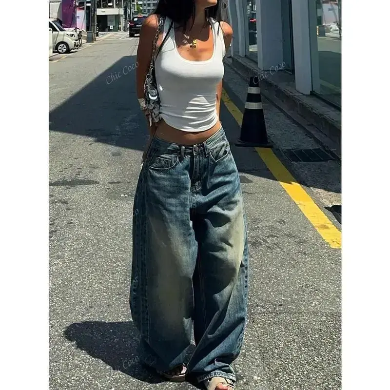 EMMIOL Low Rise Baggy Jeans for Women 90s Y2K Vintage Wide Leg Denim Pants Streetwear Boyfriend Style