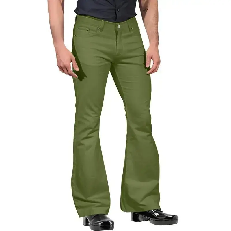 Men's Retro Flare Pants, Solid Color Mid-Rise Trousers Casual Classic 70s Bell Bottom/Size(cm)/S Length: 111 Waist: 88 Hip: 114/M Length: 113 Waist: 92 Hip: 118/L Length: 115 Waist: 96 Hip: 122/XL Length: 116 Waist: 100 Hip: 126/XXL Length: 117 Waist: 104 Hip: 132/Size(inch)/S Length: 43.70 Waist: 34.65 Hip: 44.88/M Length: 44.49 Waist: 36.22 Hip: 46.46/L Length: 45.28 Waist: 37.80 Hip: 48.03/XL Length: 45.67 Waist: 39.37 Hip: 49.61/XXL Length: 46.06 Waist: 40.94 Hip: 51.97/Specifications:/Gender: Men/Material: 95% Polyester and 5% Spandex/Pattern: Solid Color/Size: S/M/L/XL/XXL/Package Contents/1 * Pants/Note:/1. Please understand there may be a 1-2 cm deviation exist./2. Due to the lighting and monitors, there is a slight difference between the picture and the real item./Promise/If the product has any quality problems, please feel free to contact us, we will help you solve the problem as quickly as possible.