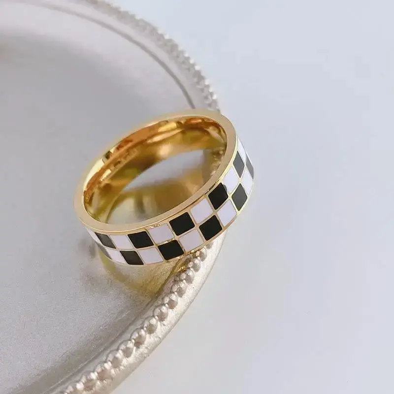 ??Checkerboard ring??This ring by a large number of black and white square combination, modelling unique personality, gold tone can be a good embellishment of your fingers, classic fashion, you can add a unique charm. ??High quality materials??Made of high-quality , not easy to fade or wear, suitable for long-term wear, high polishing, low sensitization, durable. ??Size?? 6 mm wide, simple and elegant, size 5-10, suitable for most people, can be worn alone, can also stack with other stacking ring, to create your unique style. ??A gift??This simple ring is so cool that you can give it to your daughter, mother, wife, or whoever you want to give it to, or wear it on a daily basis.