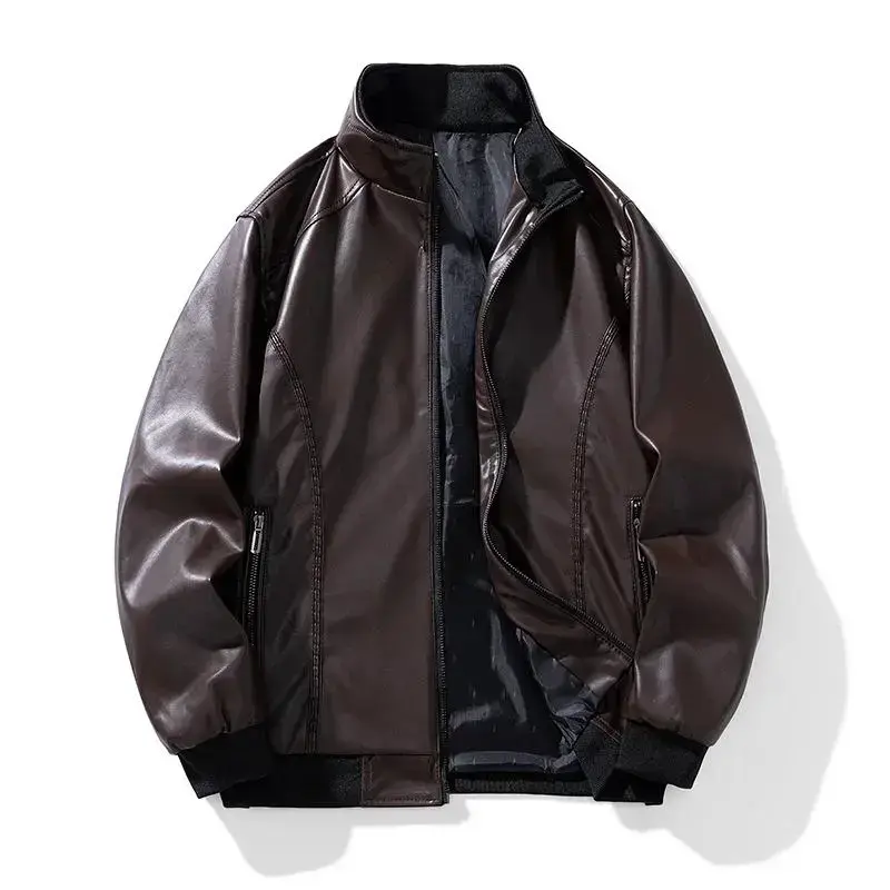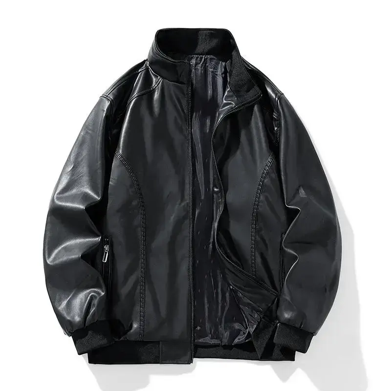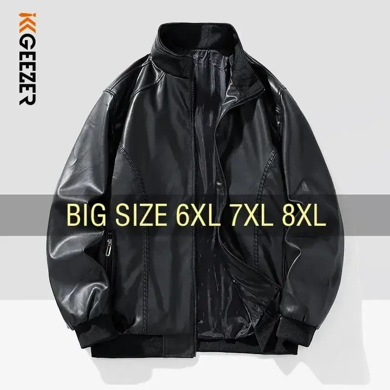 Leather Jacket Men Coats Windproof Oversized 6XL 7XL 8XL Plus Size Autumn Motorcycle Travel Fleece Black Zipper Winter Overcoat