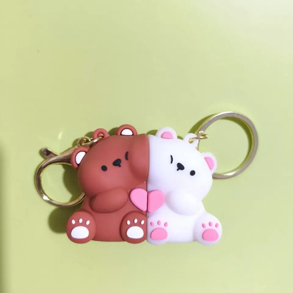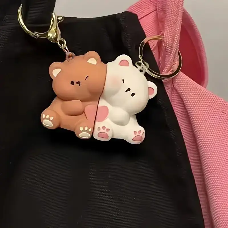 【Charming Characters】: Featuring adorable cartoon bears, these keychains add a fun and whimsical touch to your belongings. 【Heart-Shaped Design】: Each keychain includes a magnetic heart shape, symbolizing love and connection between couples. 【Durable Materials】: Crafted without wooden elements, ensuring these keychains remain robust and suitable for daily use. 【Perfect Gift Choice】: An ideal choice for Valentine's Day, these keychains express love and affection wonderfully. 【Compact Size】: Small and lightweight, these keychains effortlessly attach to bags or keys, making them practical for everyday carry.