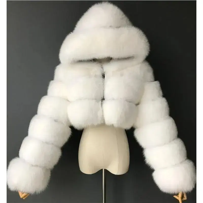 Furry Cropped Faux Fur Coat with Hood ?C Plush Warm Stylish Outerwear for Cold Weather