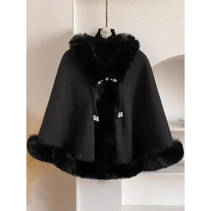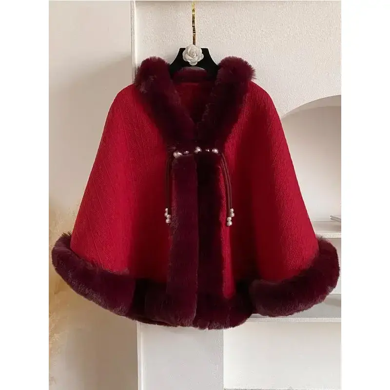 ??Unique Pearl Accents??: Featuring distinctive pearl embellishments, this outerwear adds an elegant touch that sets it apart from ordinary capes. ??Soft Plush Trim??: Crafted with plush edging, this cape provides a cozy feel, ideal for chilly autumn and winter days. ??Adjustable Tie Closure??: Designed with a tie closure, this outer garment ensures a secure fit, allowing for easy adjustment to your liking. ??Plain Pattern??: Featuring a classic plain pattern, this piece offers a timeless look that can pair well with various outfits. ??Seasonal Versatility??: Specifically tailored for fall and winter, it offers warmth while maintaining functionality for everyday wear.