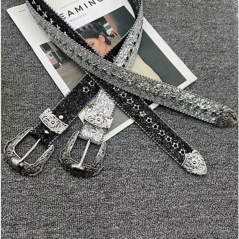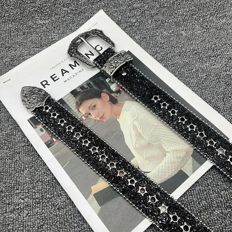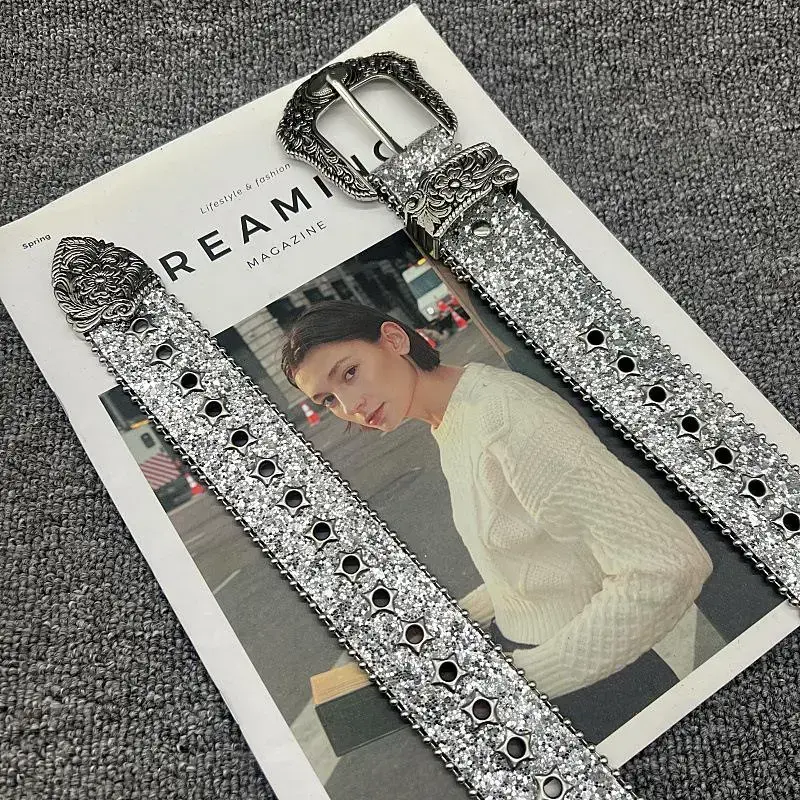 Easter Y2k Rhinestone Decor Belt,Women's Fashion Rhinestone Decorated Hollowout Pentagram Pu Buckle Belt, Casual TrendyFlash Design Belt, Elegant All-match FashionAccessories for Daily Wear
