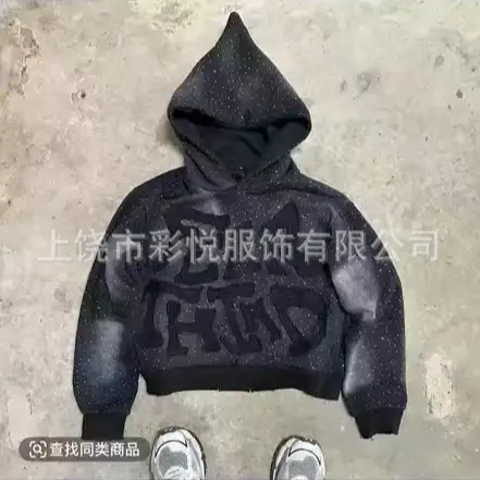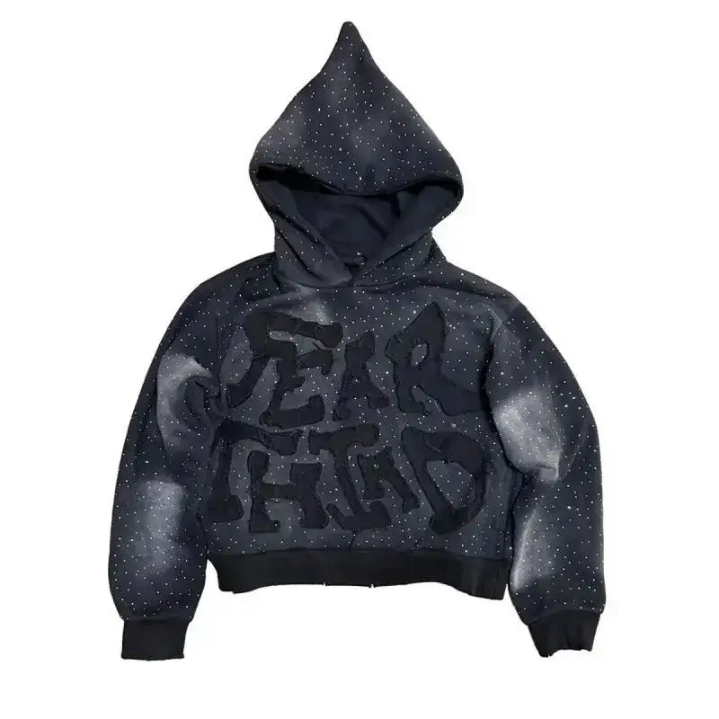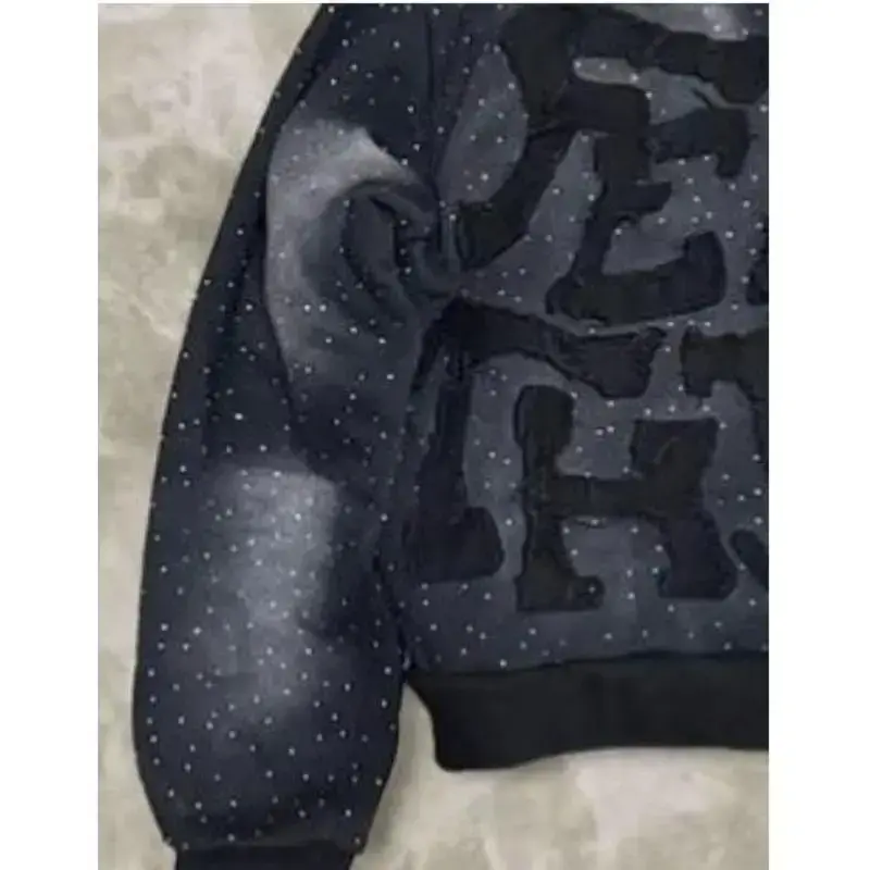 New Fashion Harajuku Style Bright Rhinestone Oversized Letter Patch Hoodie Unisex Hip-Hop Gothic Casual Sweatshirt Fabric Flat Dot Fleece Original Outerwear