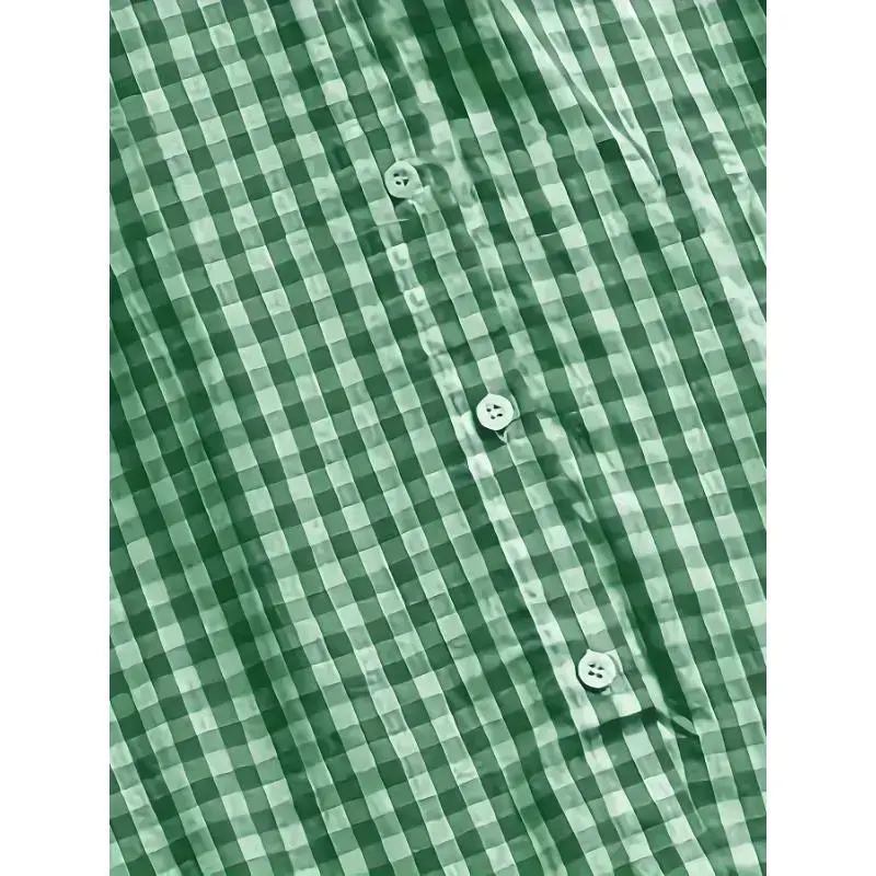 Women's Retro Green Gold Checkered Cardigan ✨ Elevate your spring wardrobe with this women's retro green gold checkered cardigan. Crafted from a polyester blend (95% Polyester, 5% Elastane), this long-sleeved sweater offers a perfect blend of style and comfort. Machine washable, it's ideal for spring and summer wear. The cardigan features a pocket detail and a lapel collar style. 🌸 Material and Care This cardigan is a versatile addition to your wardrobe, suitable for casual outings.
