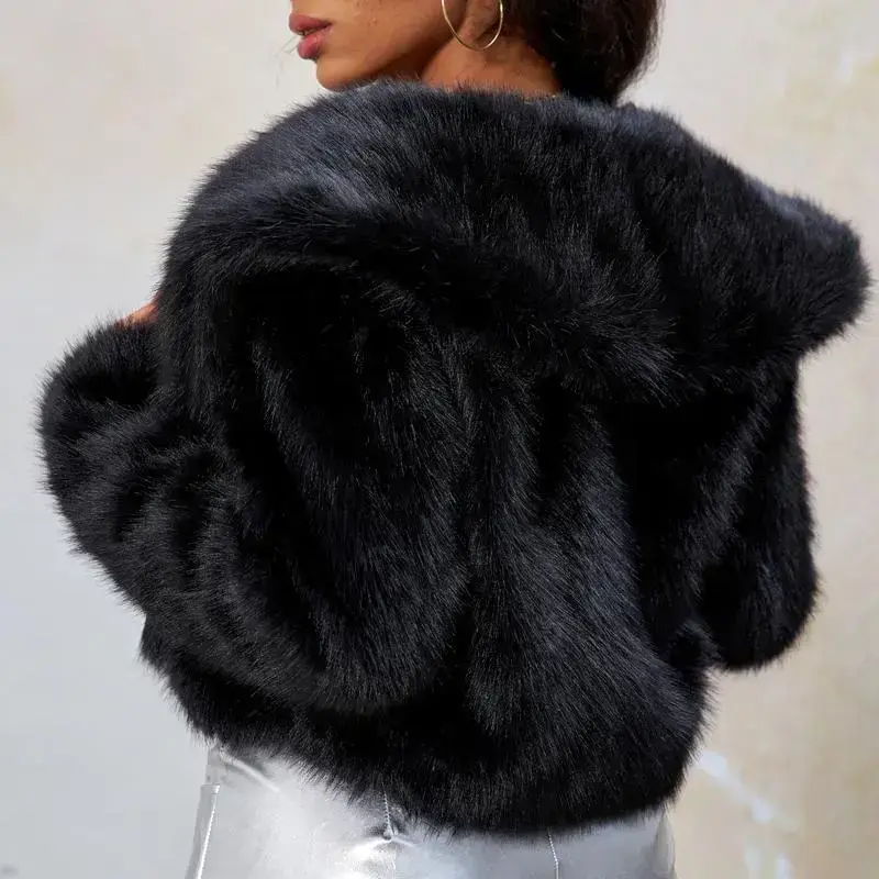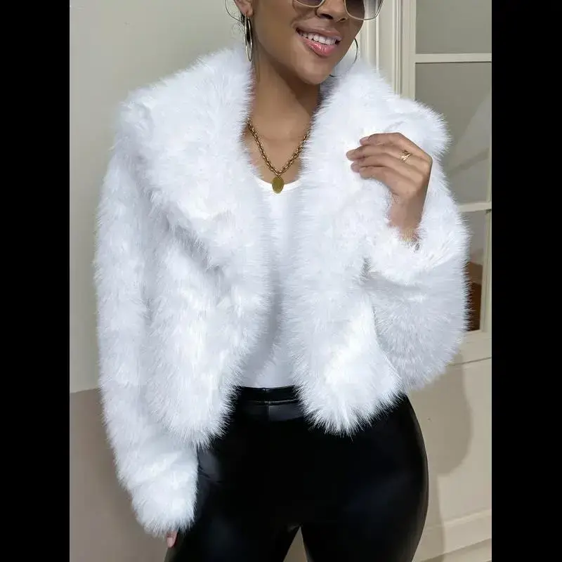 Shiny women's fur shawl jacket Pure white Open front coat for autumn and winter leisure long-sleeved coat