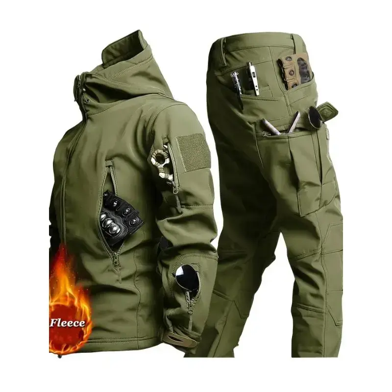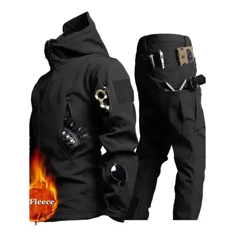 Mens Outdoor Jacket Pants Set Windproof Waterproof Multi Pocket For Hiking Cycling Durable Comfortable Spring Autumn