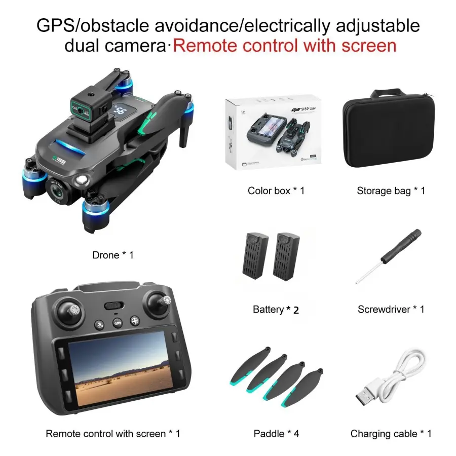 4K Camera Drone for Adults with GPS and 5G Remote Controller, 5.9" HD Screen, Obstacle Avoidance, One-Key Return, Optical Flow Mode, Brushless Motor FPV, Beginner Quadcopter with Dual Battery Set foldable takeoff altitude hold