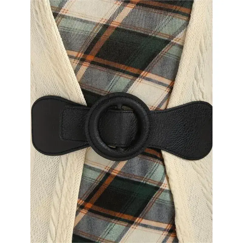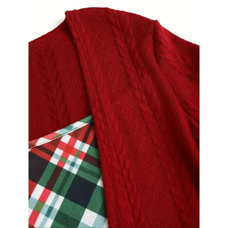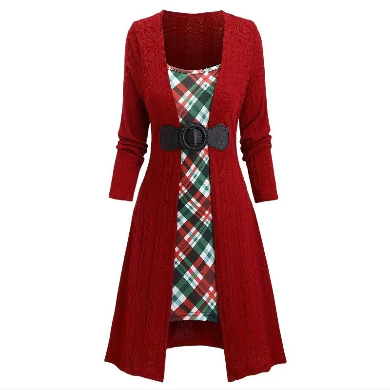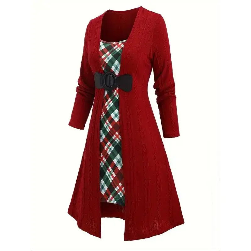 [Plus Size]Plaid Patchwork Print Textured Square Neck??2 IN 1?A Line Dress, Casual Long Sleeve Dress for Fall & Winter, Women's Clothes for Daily Wear 2 piece sets two piece set body by raven set
