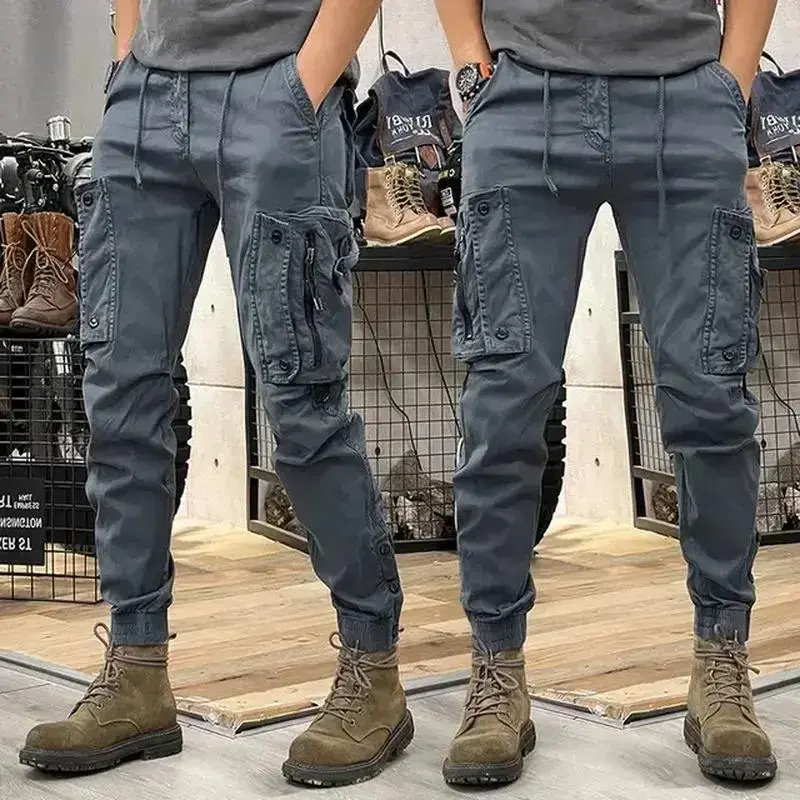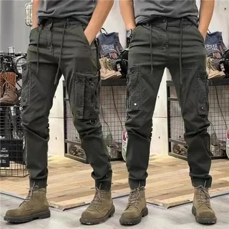 Military Tactical Cotton Cargo Pants for Men, Elastic Casual Trousers, Zipper Multi-Pocket Joggers, Khaki, Black, Army Green