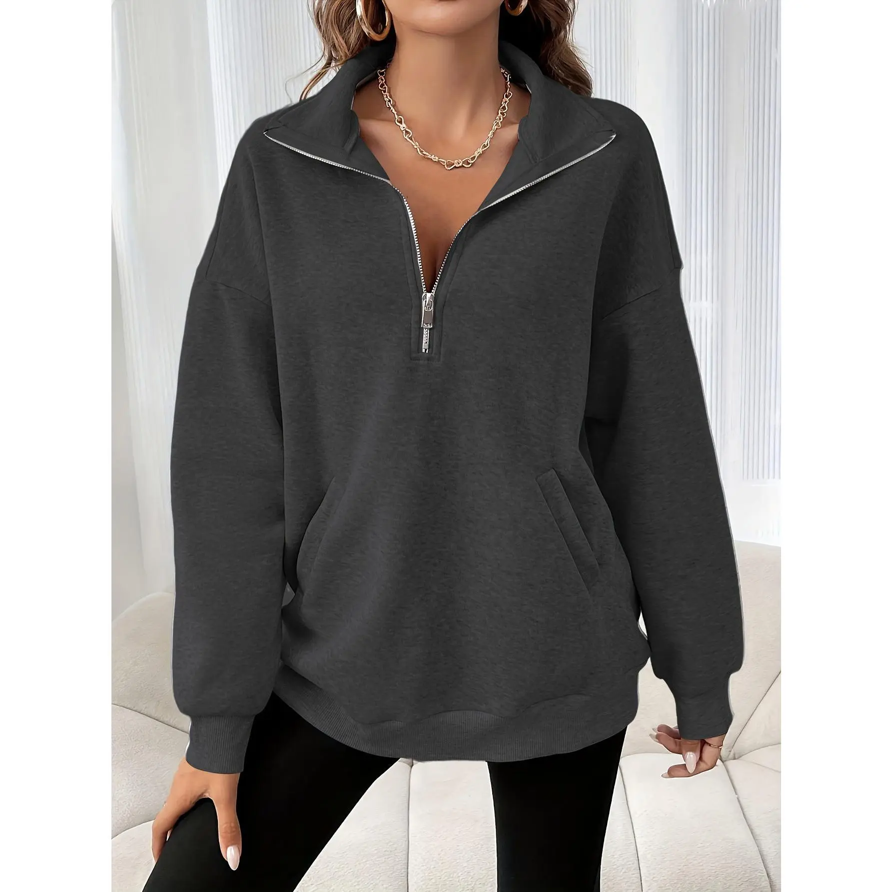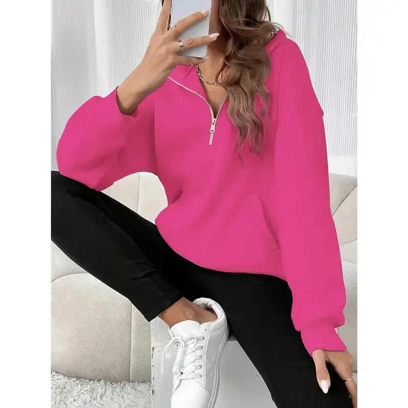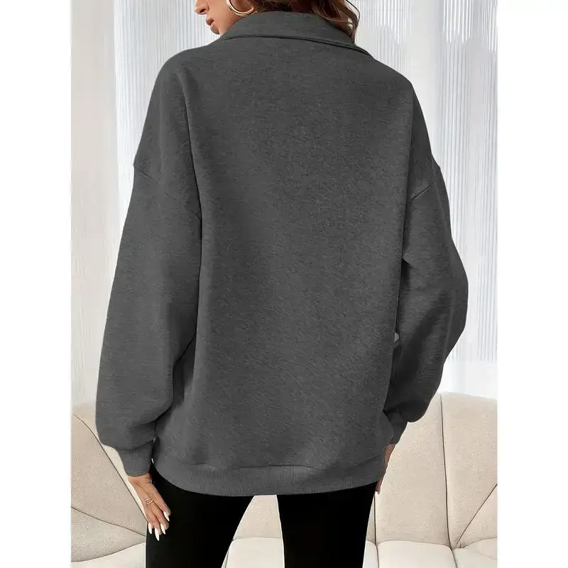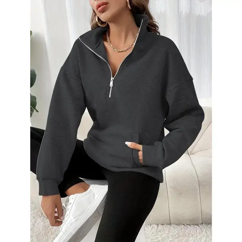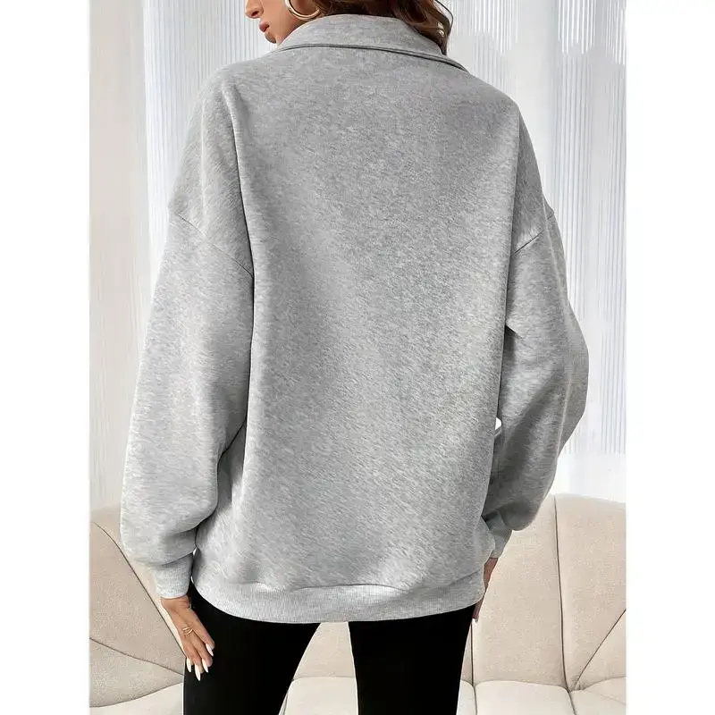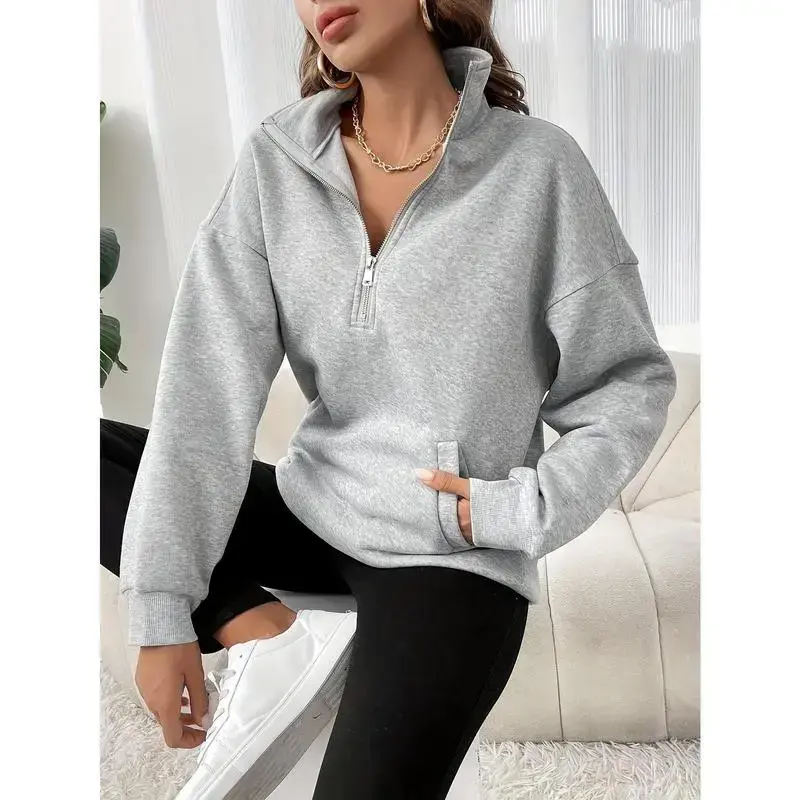 Women'S Solid Color Half-Zip Drop Shoulder Sweatshirt with Zipper