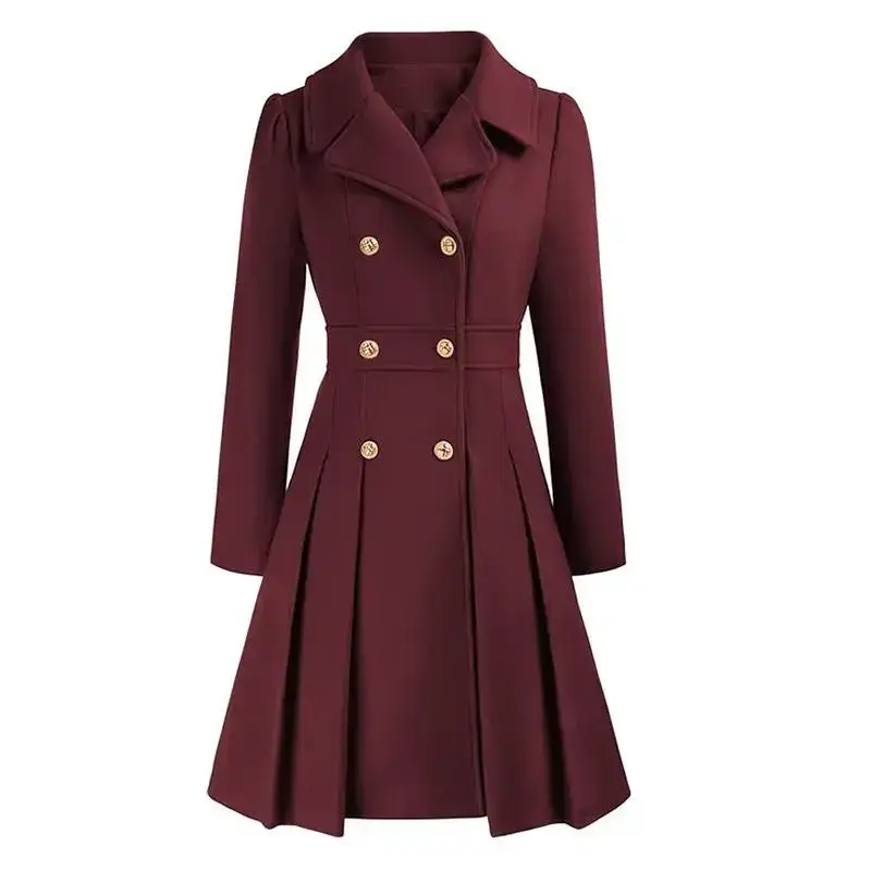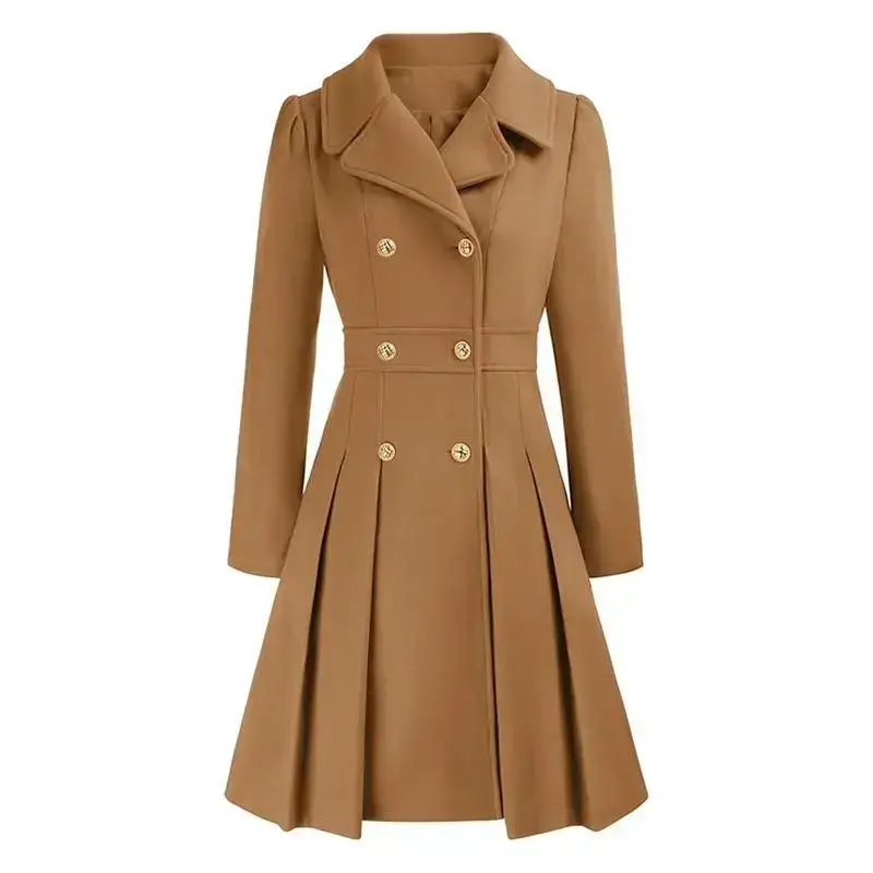 2025 Autumn/Winter Selected Women's Trench Coat - Lapel, Double-Breasted, Pocketed A-Line Pea Coat