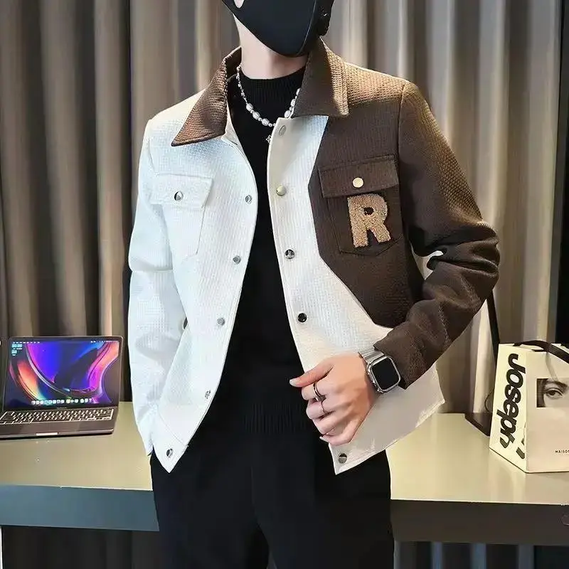 Men Jacket Korean Style Casual Casual Cargo Spring Autumn Jacket Coat Patchwork Loose Male Outerwear Coats Menswear Tops Long Sleeve Black Can be used with raincoat