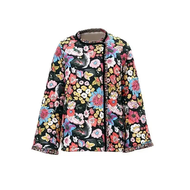 New Women Ladies Girls Winter Loose Quilted Jacket Floral Print Button Down Long Sleeve Padded Coat Warm Outwear Casual Womenswear Tops Outerwear