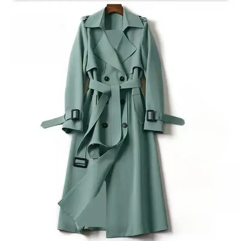 This women's solid double button belted trench coat features an elegant lapel neck and long sleeves. Perfect for fall and winter wear, it offers a casual yet stylish look. Ideal for daily wear, this coat is a versatile addition to your wardrobe. Women's Winter Clothes This coat is part of women's winter clothes collection. It is a perfect outerwear option for women, providing both style and comfort. Ideal for layering, it complements various outfits.