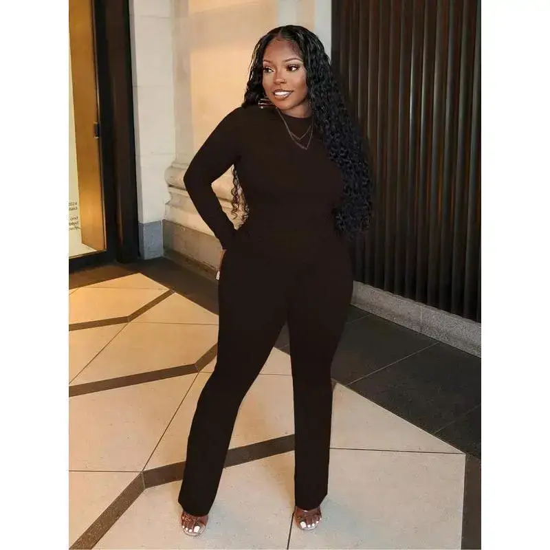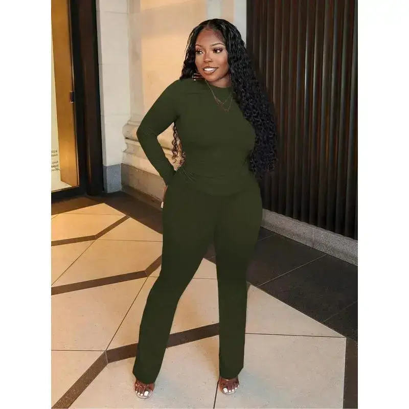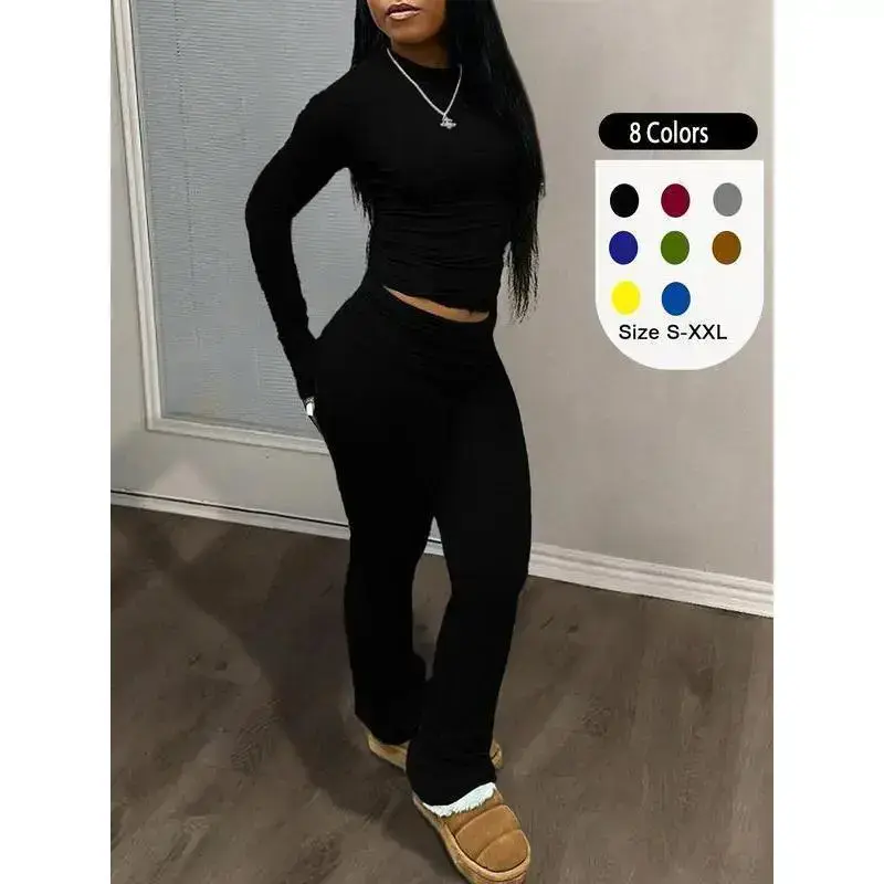 Two-Piece Set for Women ✨ Elevate your wardrobe with this two-piece set! 🌟 This set includes a solid color long sleeve tee and foldover waist flare leg pants. The tee features a round neck, perfect for layering. The high waist bell bottom trousers add a stylish touch. Ideal for fall and winter, this set is versatile and comfortable. Available Colors and Sizes Choose the perfect match for your style and comfort. This set is a must-have for any wardrobe. Perfect for Fall & Winter This women's set is designed for cooler seasons. The long sleeves and high waist design provide warmth and style. Whether you're out and about or at home, this set is a great choice. Stay cozy and fashionable this fall and winter.