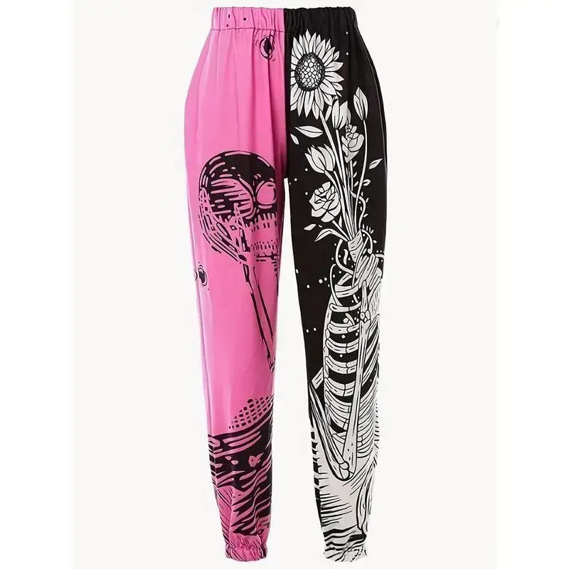Women's Bohemian Hippie Joggers ✨ Elevate your style with our Women's Bohemian Hippie Joggers! 🌞 These high-waist joggers feature a colorblock graphic print with sun and moon design. Perfect for casual wear, they offer a loose fit for comfort. Made from polyester, these yoga pants are machine washable, ensuring easy care. Ideal for all seasons, they come in two color options: White and Black, and Rose Red and Black. Material and Care