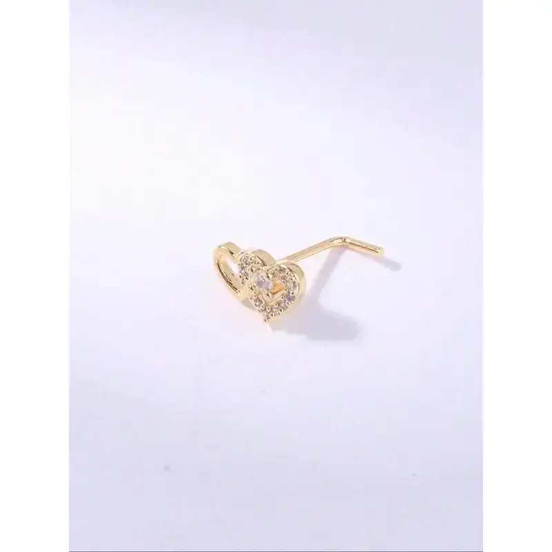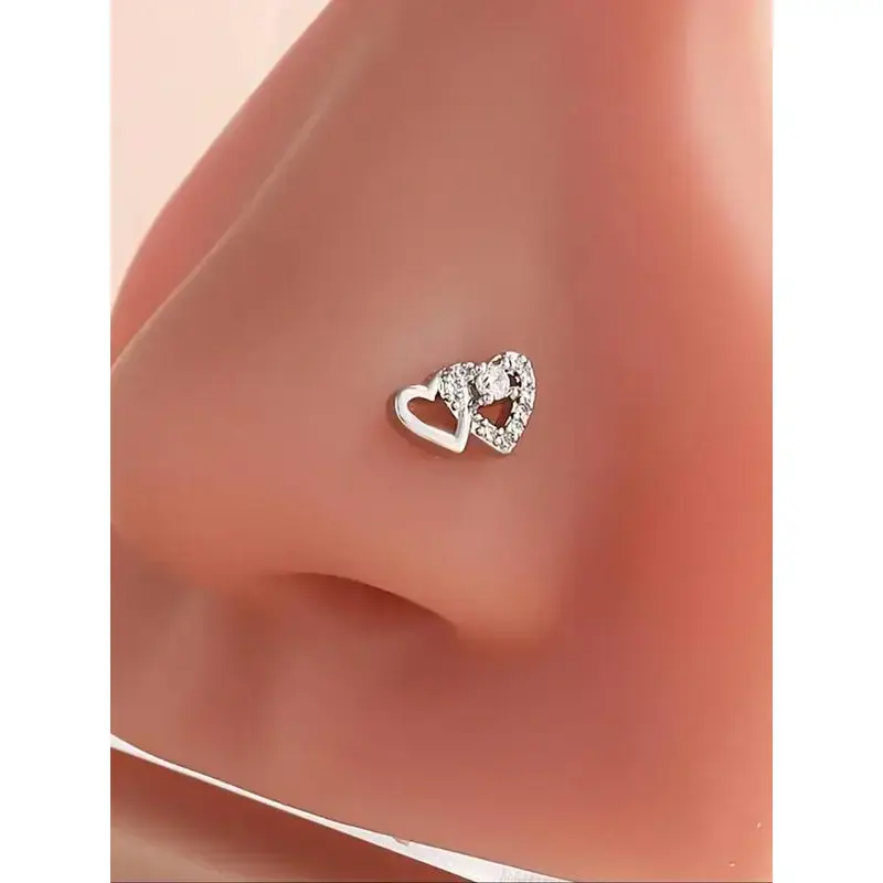 Double Heart L-Shaped Nose Ring, Shimmering L-Shaped Bone Piercing Jewelry, Elegant Nose Ornament for Trendy Look