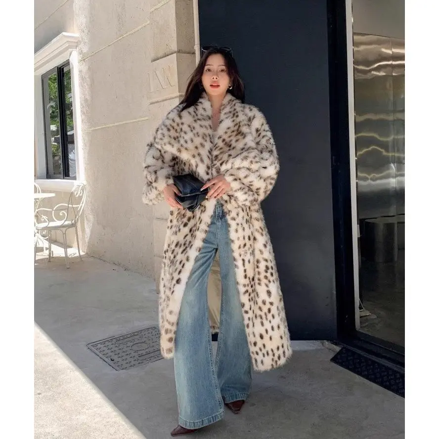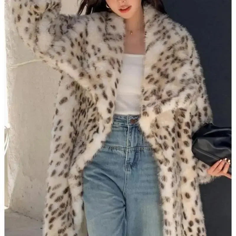 Bold Pattern : The leopard print adds a daring touch, making this faux fur coat an eye-catching addition to your fall and winter wardrobe./Waterfall Neckline : Features a distinctive waterfall collar that enhances the coat's elegant silhouette while providing extra warmth around the neck./Soft Texture : Crafted with premium faux fur, this coat ensures a soft touch against your skin, allowing for a luxurious wearing experience./Long Sleeve Coverage : With long sleeves, this coat effectively shields you from the cold, making it an excellent choice for chilly autumn days./Relaxed Fit : The loose-fitting structure provides freedom of movement, ensuring you feel at ease whether you're running errands or out for a leisurely walk.