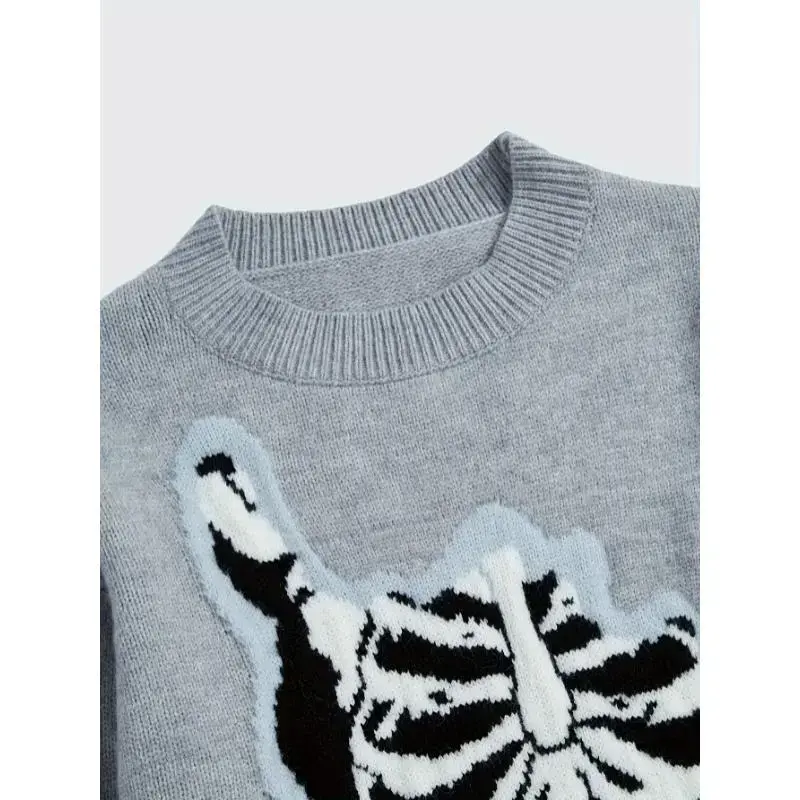 Men'S Casual Skull Pattern Crew Neck Sweater - Acrylic Knit Pullover with Skeleton Design, Grey and Black, Fall/Winter Fashion, Regular Fit
