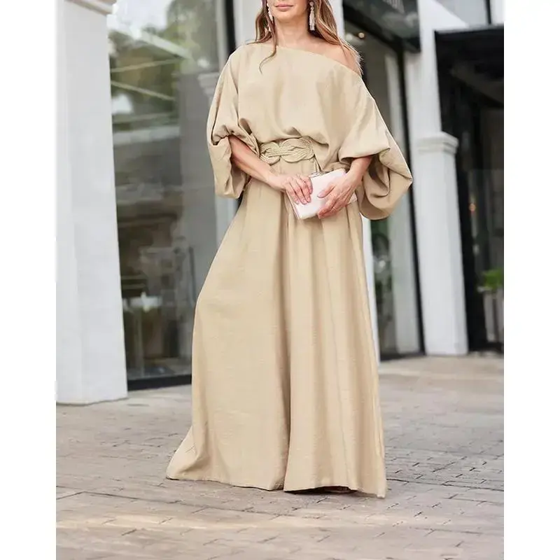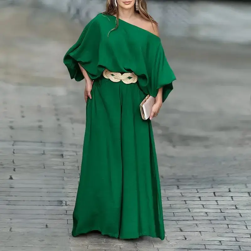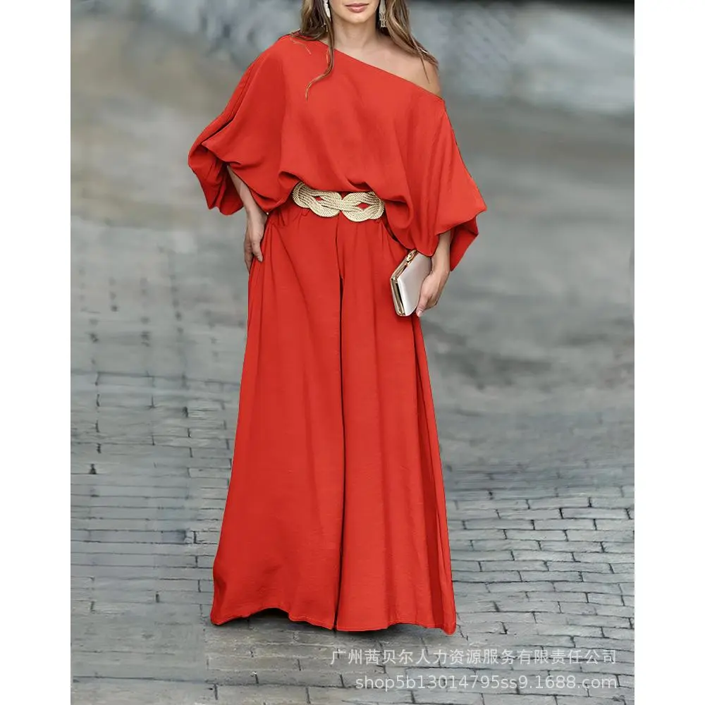 About this Item Chic Skew Neck Design: The unique skew neck adds a modern and sophisticated touch, perfect for making a statement. Elegant Lantern Sleeves: Voluminous lantern sleeves enhance the top with a stylish and dramatic silhouette. Flowy Wide-Leg Pants: The wide-leg design provides comfort and a flattering fit, creating an effortlessly chic look. Coordinated Two-Piece Set: A perfectly matched set for a polished and cohesive outfit that??s easy to style for various occasions. Product Details Style: Chic Type: Pants Sets Material: 100% Polyester Package Include: 1*Pants Set Size Guide (Body Measurements for Reference) No belt included