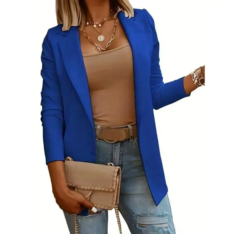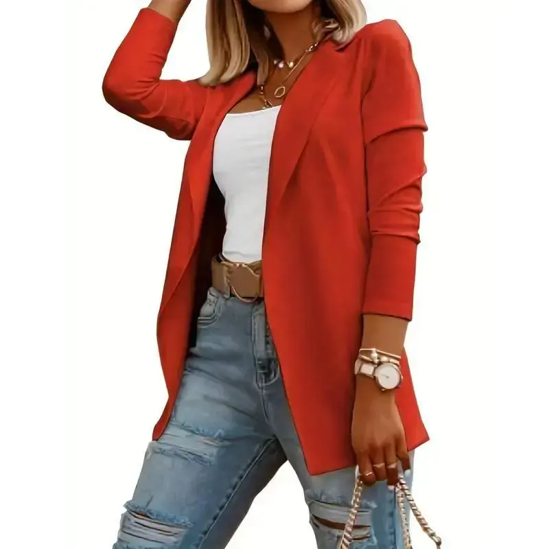 Solid Lapel Blazer, Casual Open Front Long Sleeve Work Office Outerwear, Women's Clothing