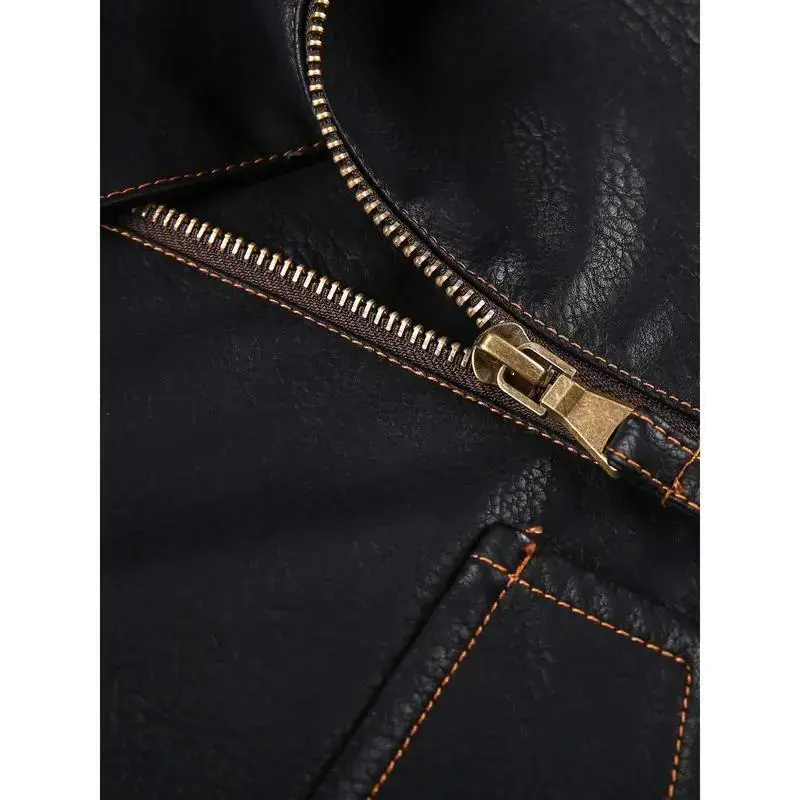 Men's Retro Biker Jacket - Stylish Black, Loose Fit, Durable Polyester, Multiple Zippers & Studded Details for Spring & Fall
