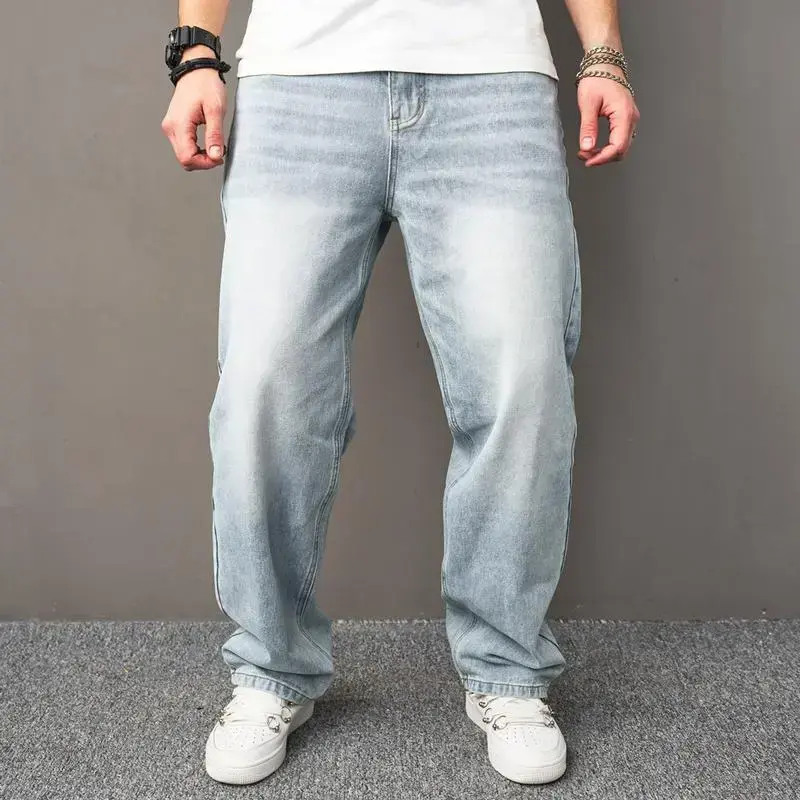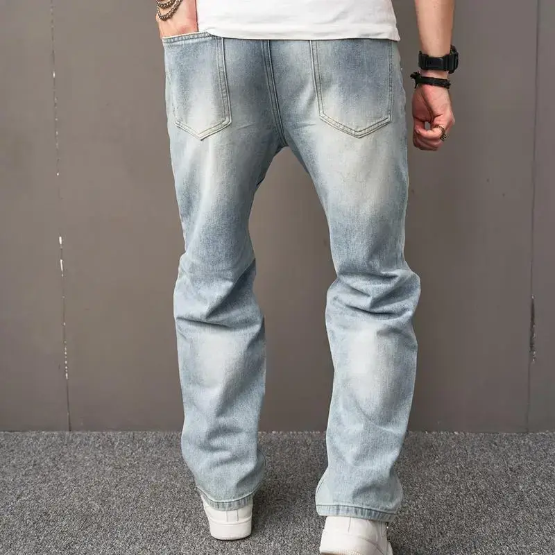 Loose jeans men's multi pocket tattered straight leg men's carpenter fashionable comfortable work pants men's underwear plain color casual men's jeans pants street wear light beige loose pants tight jeans men's style