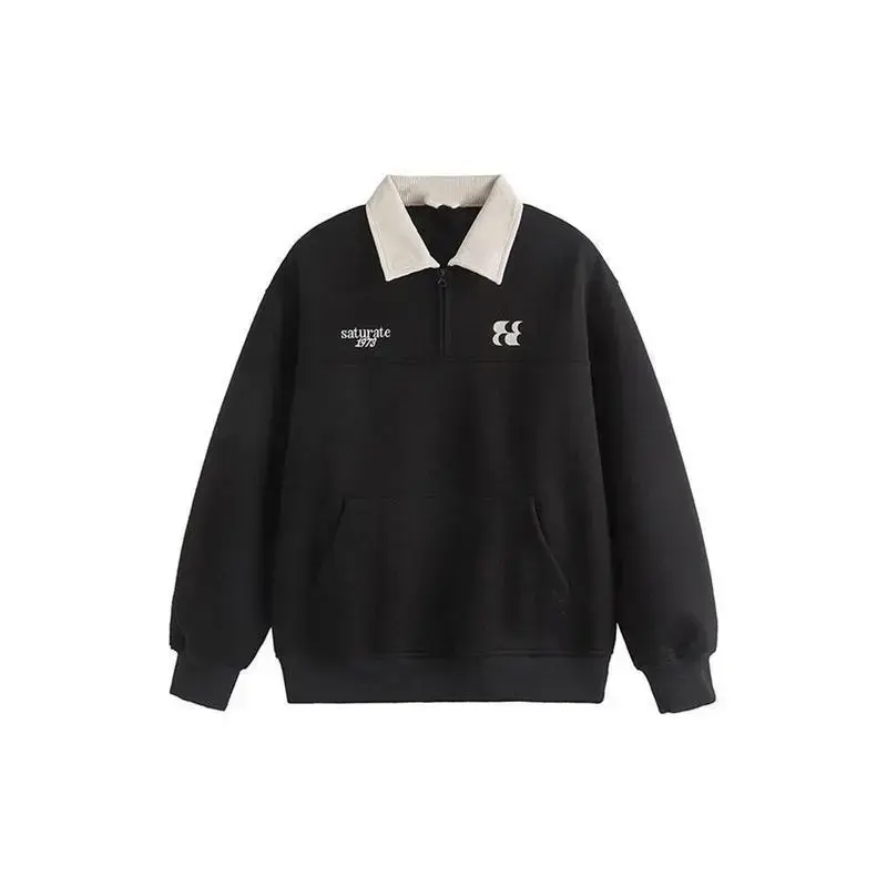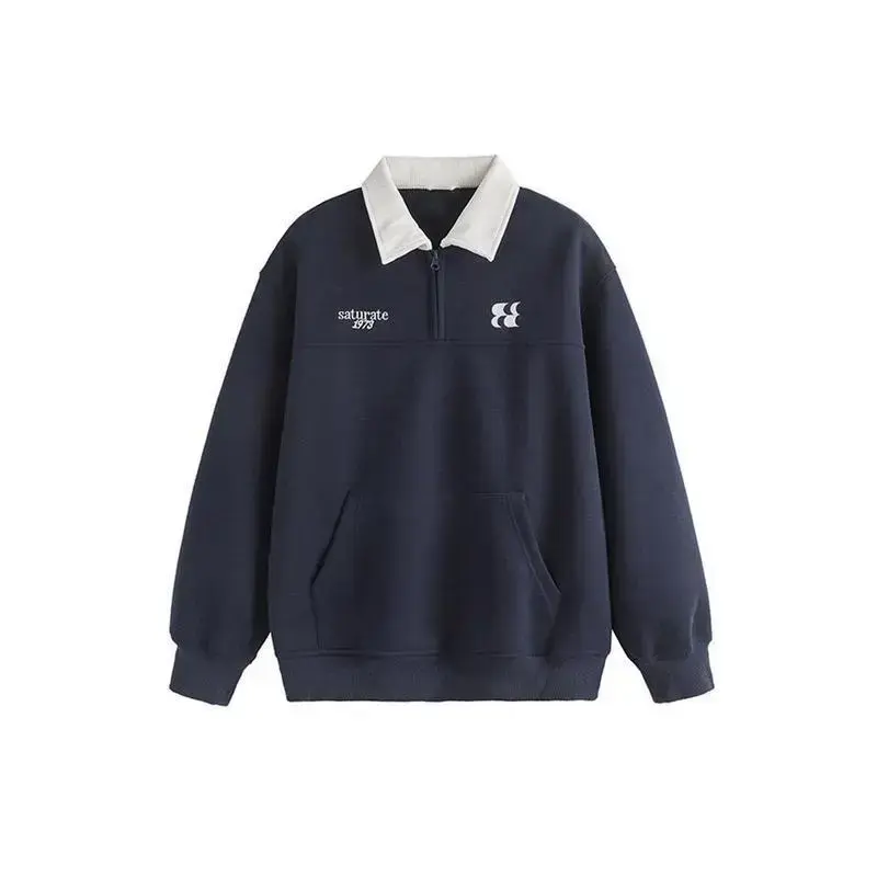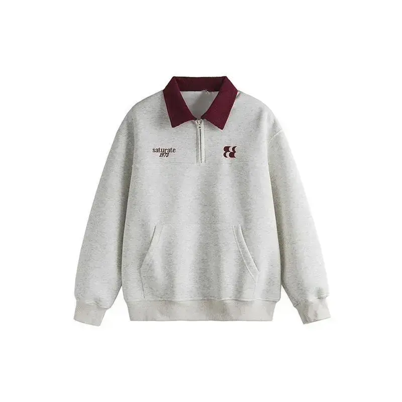 Heavy Polo Collar Sweater Men's Fashion New Letter Embroidery Contrast Color College Casual Long Sleeve