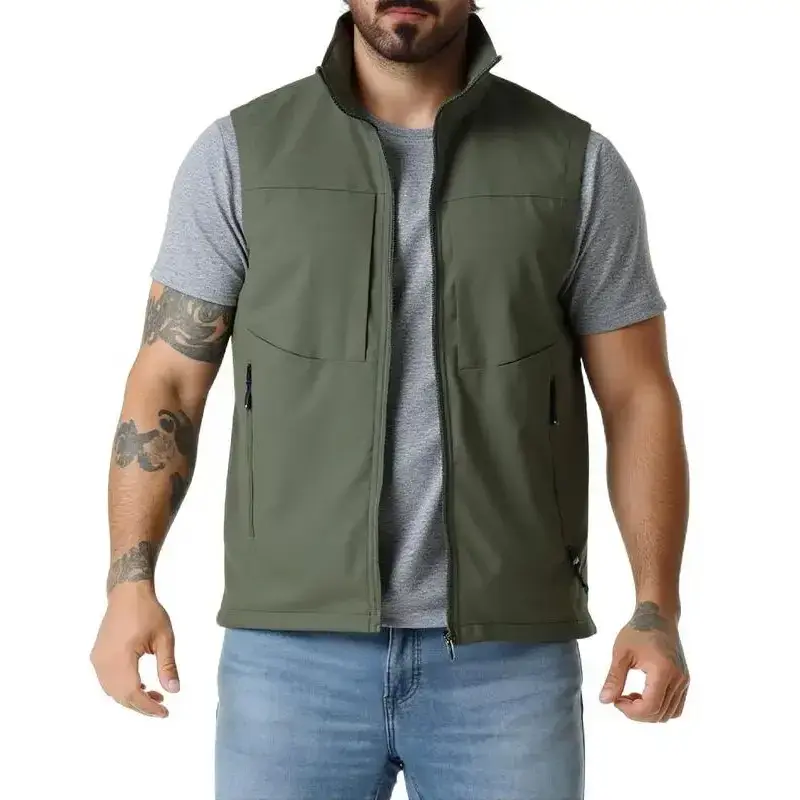 Mens Army Green Lightweight Travel Vest for Hiking Fishing & Photography - Sleeveless Design, Versatile Utility Jacket Top Menswear Army Green Tops Plain6WPB
