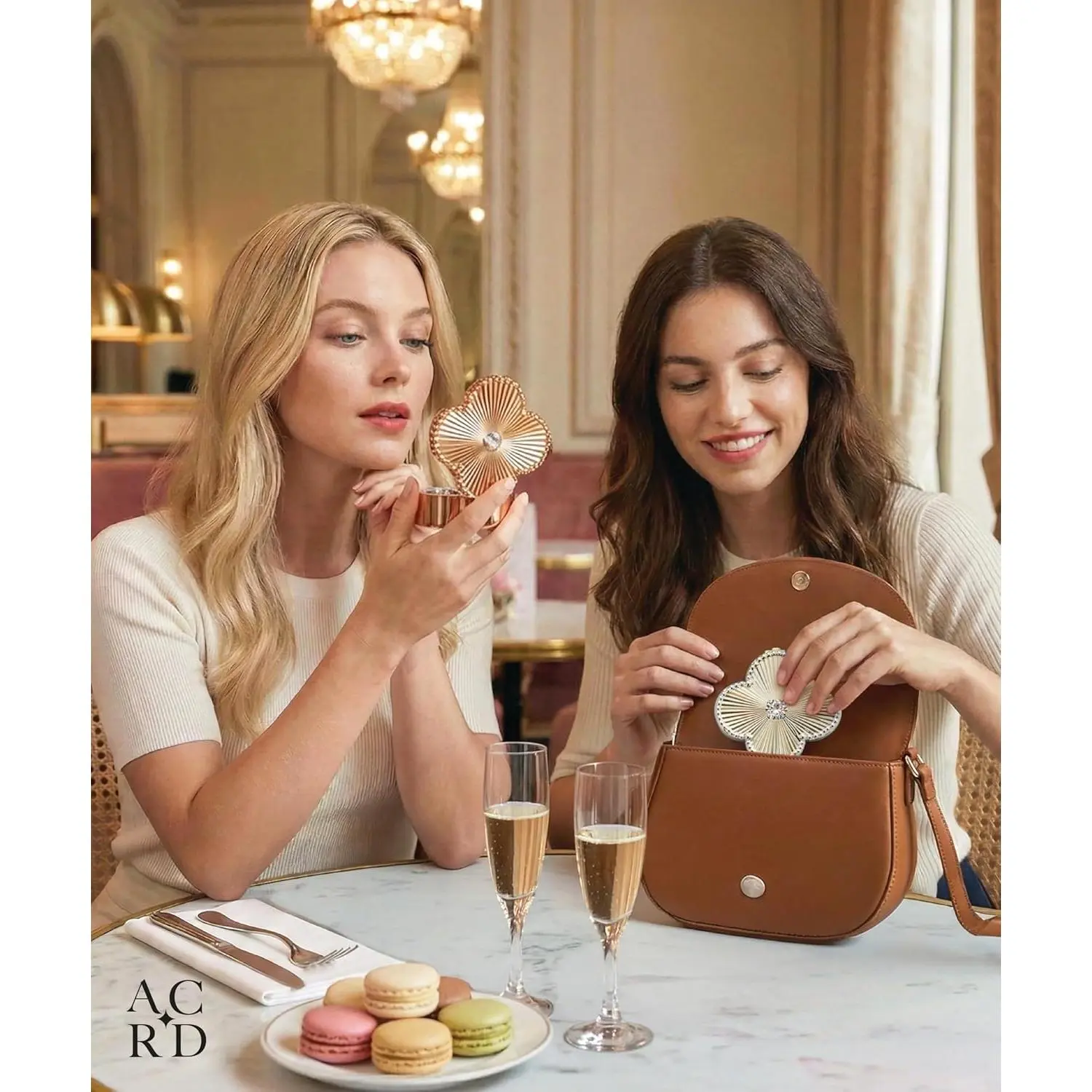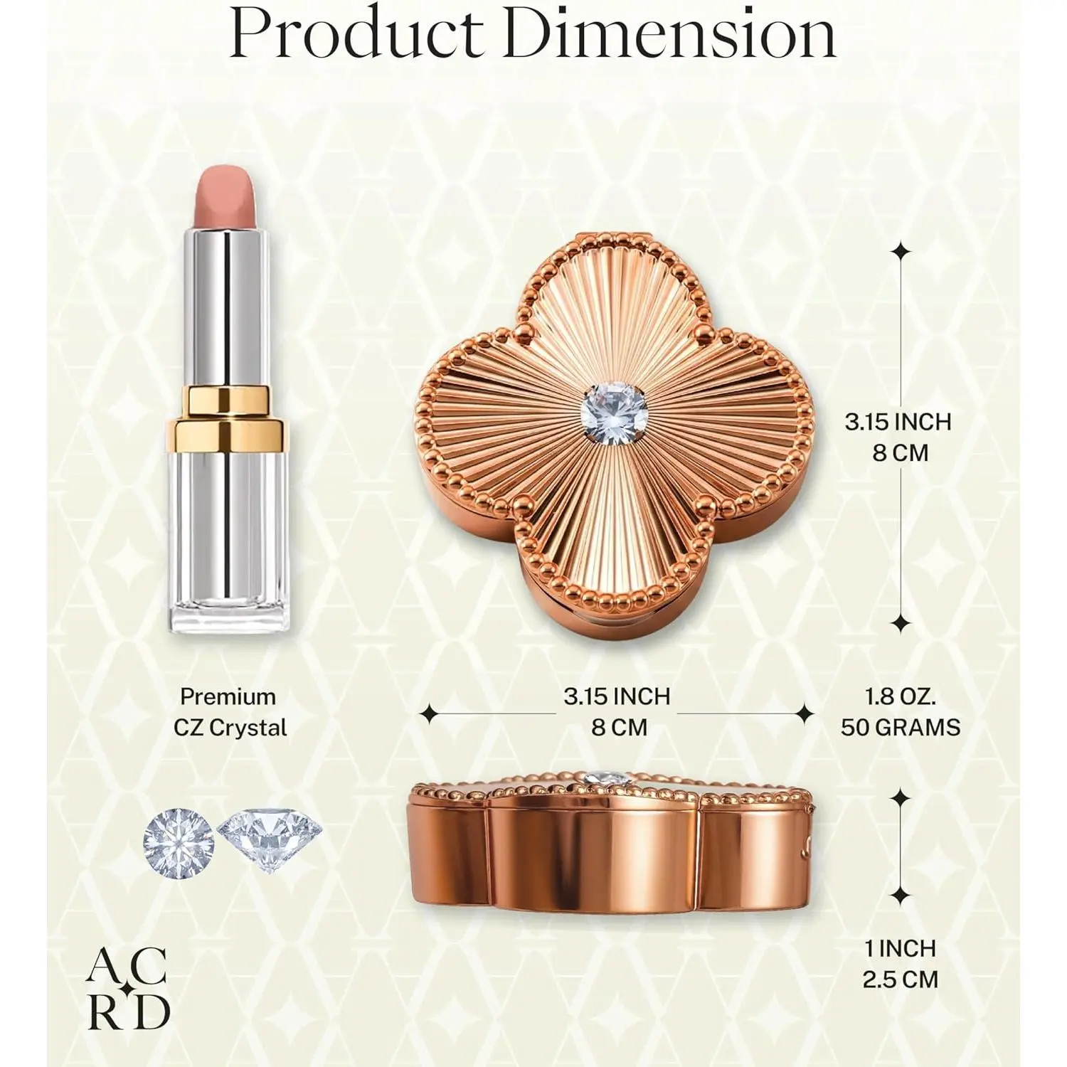 Lucky Charm Luxury Travel Pill Organizer, 5 Compartments, Easy-Open Lock, Mirror, Cute Compact Pill Box for Purse, BPA-Free, Gold, Stylish Vitamin Case & Small Jewelry Storage (Rose Gold)