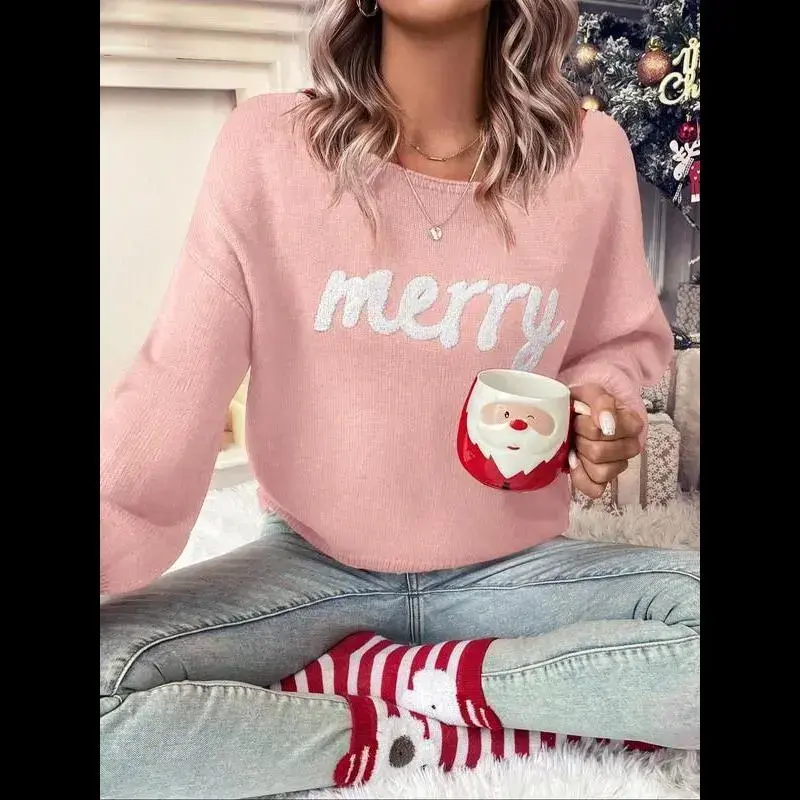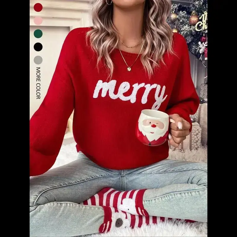 【Christmas Pattern】: Showcase your holiday spirit with a vibrant Christmas-themed pattern that sets this sweater apart from ordinary knits./【Moderate Thickness】: Crafted from moderate thickness fabric, this sweater provides warmth while remaining breathable for daily wear./【Fitted Cut】: Tailored with a fitted silhouette, it enhances body shape without compromising on ease of movement during activities./【Round Neckline】: Featuring a round neckline, this sweater combines simplicity with a flattering cut that complements various necklines./【Seasonal Wear】: Designed specifically for fall and winter, this cozy piece is suitable for both everyday outings and festive gatherings.