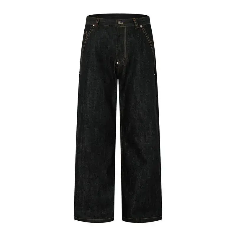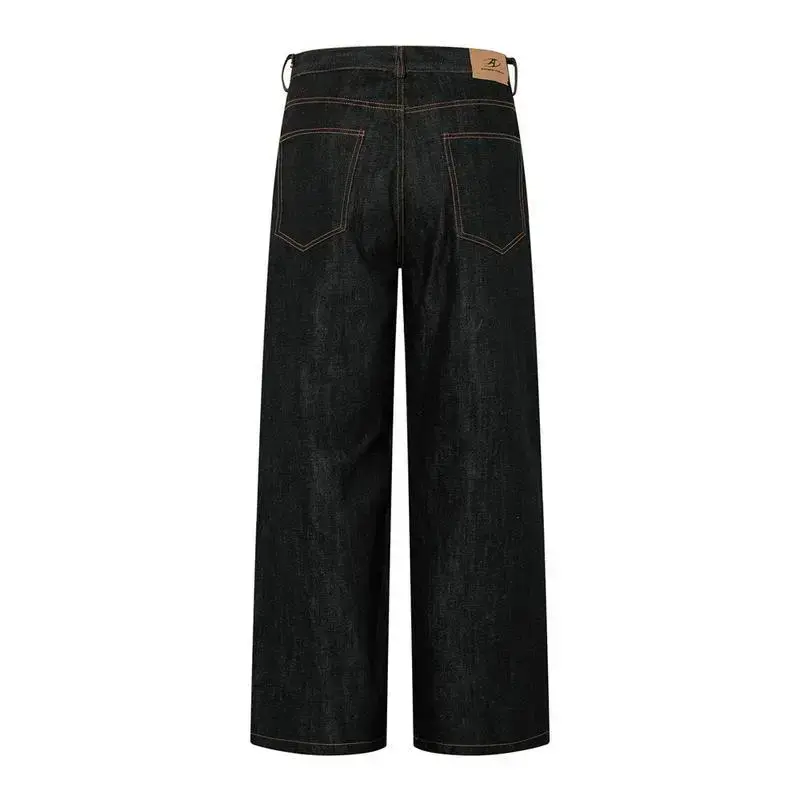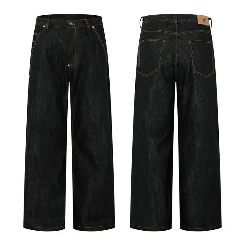 Y2K American New Pattern Embroidery Blacks Baggy Jean Boys Men High Street Vintage Hip Hop Fashion Casual Joker Couple Wide-leg