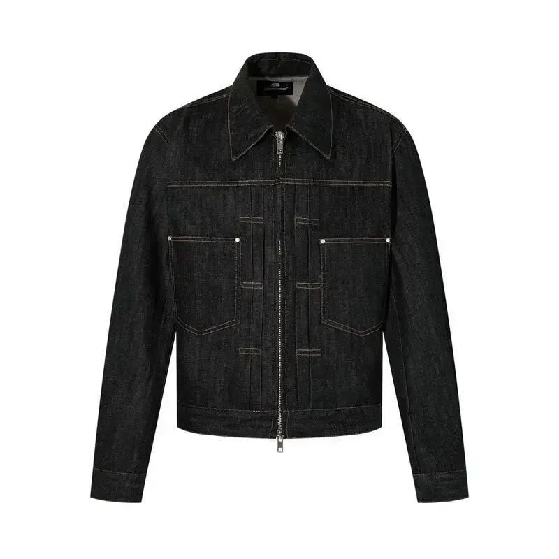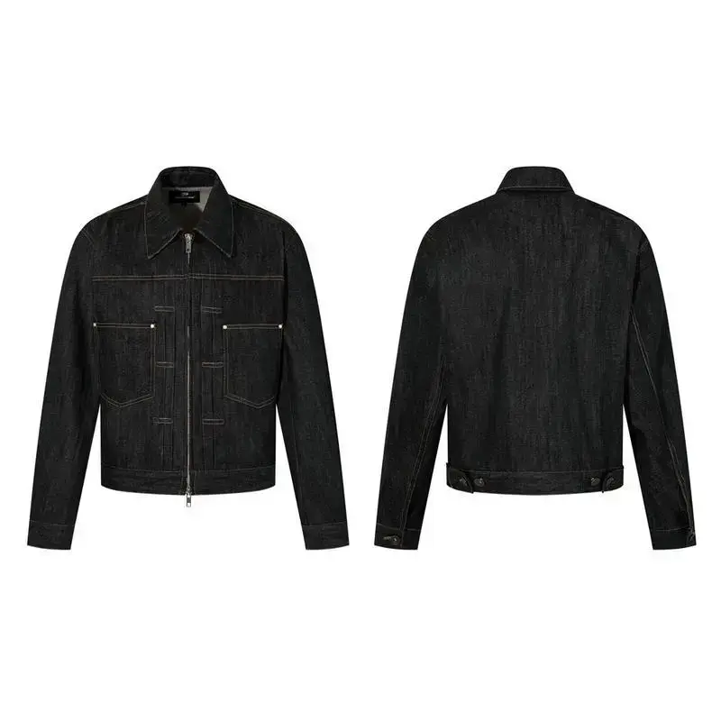 Men's casual denim suit: work jacket with double zippers, loose straight-leg pants for spring and autumn, vibe style Can be used with raincoat