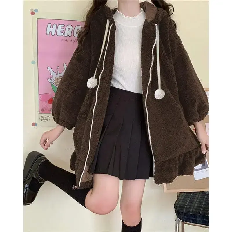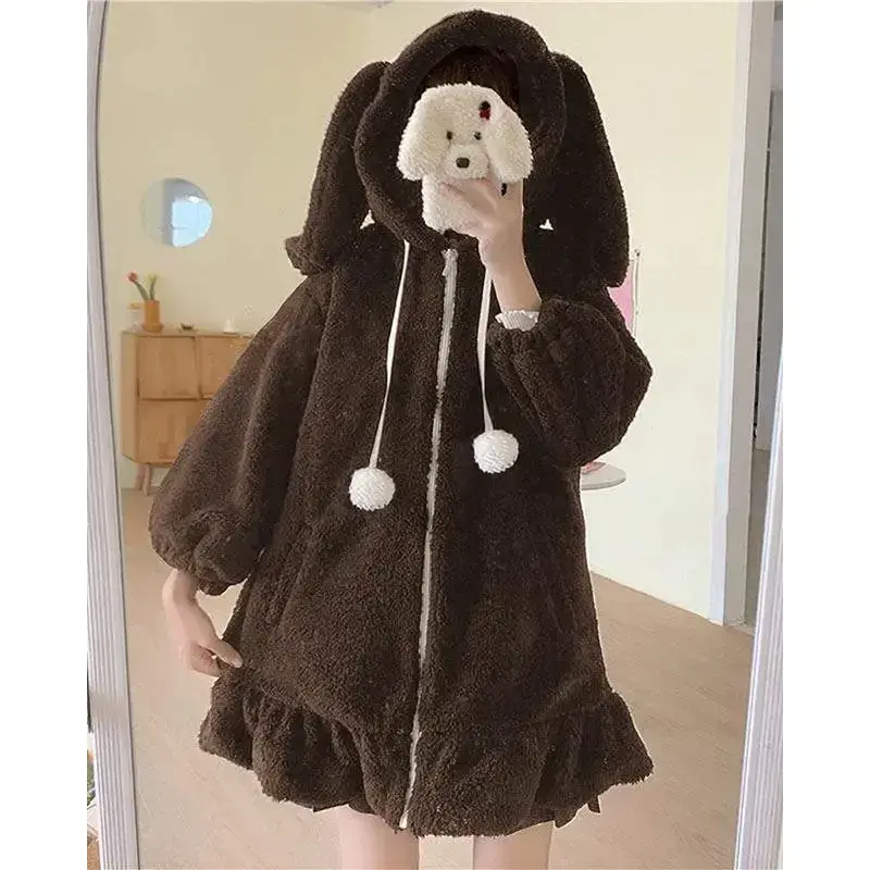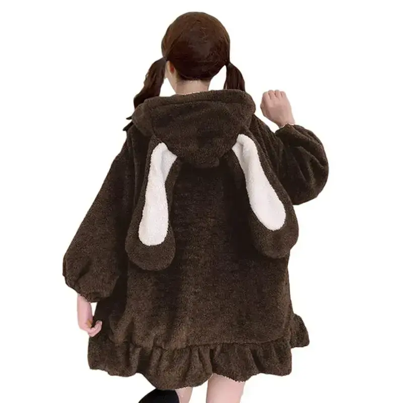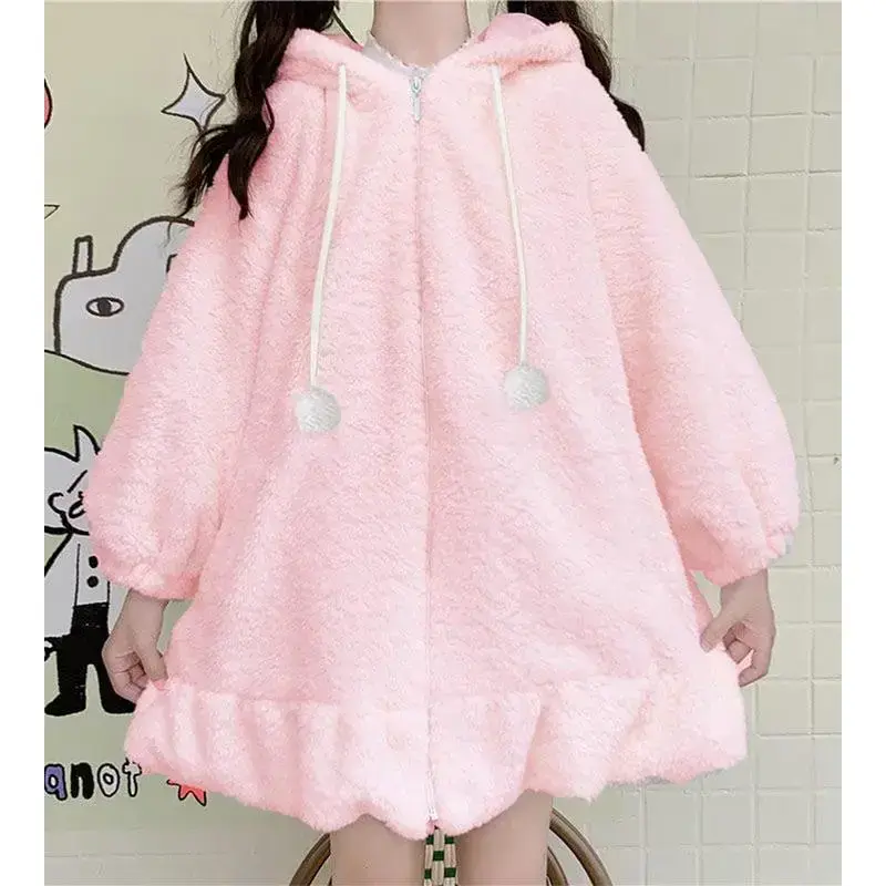 Anime Rabbit Ear Hoodie Women's Sweet and Cute Hairy Rabbit Sweater Top Role Playing Jacket Coat