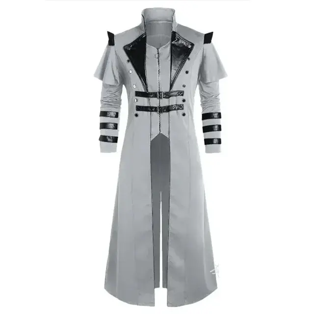 This medieval Renaissance punk long slit coat is an excellent choice for stage performances and creative photography, perfectly blending retro aesthetics with punk spirit.Inspired by the clothing of the Renaissance period, it features a large lapel and puffed sleeves, paired with distressed velvet or coarse linen fabrics, exuding a classical and luxurious charm.Punk elements are strongly injected through metal rivets, chain decorations and leather straps, creating a unique visual tension. The super-long slit design extends from the hem to the thighs.As you move, the hem of the garment flows gracefully, exuding a carefree and unrestrained charm, adding drama and dynamic beauty to the overall look.The three-dimensional cutting conforms to the figure, outlining an elegant contour while ensuring free movement.Whether used for character shaping in stage plays or as the core styling element in retro-themed photography, this coat can instantly create a strong atmosphere, helping you transform into a mysterious traveler through time and space, becoming the absolute focus under the spotlight or in front of the camera. Product weight: 680 grams Size chart: