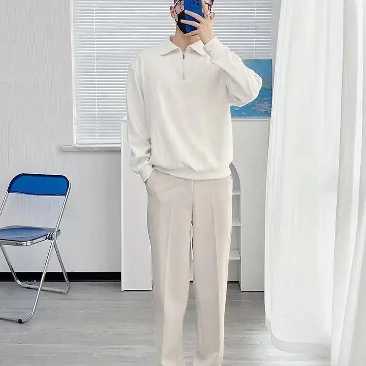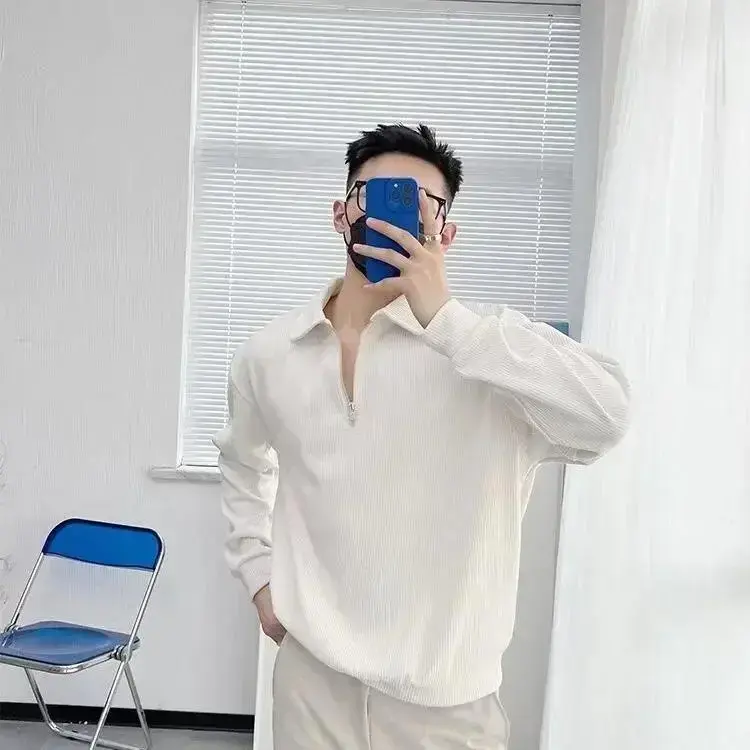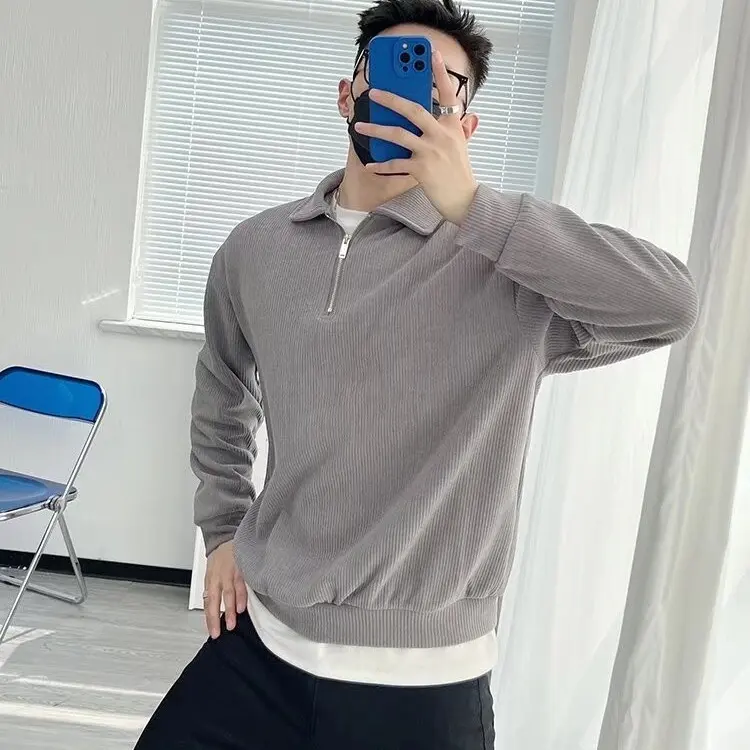 Autumn New Half Zip Sweater Men's American Style Retro Loose Casual Design Niche Top Solid Color Pullover