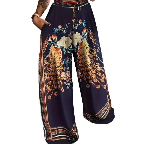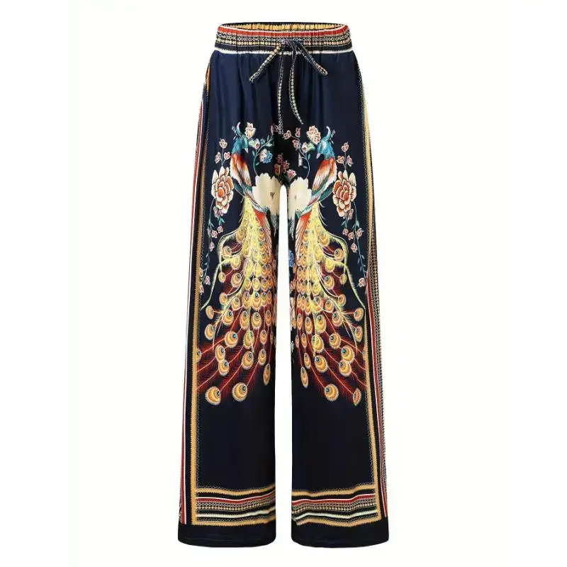 2023 Fashion Peacock Printed Long Pants - Single-Sided Brushed, Stylish for Casual Wear