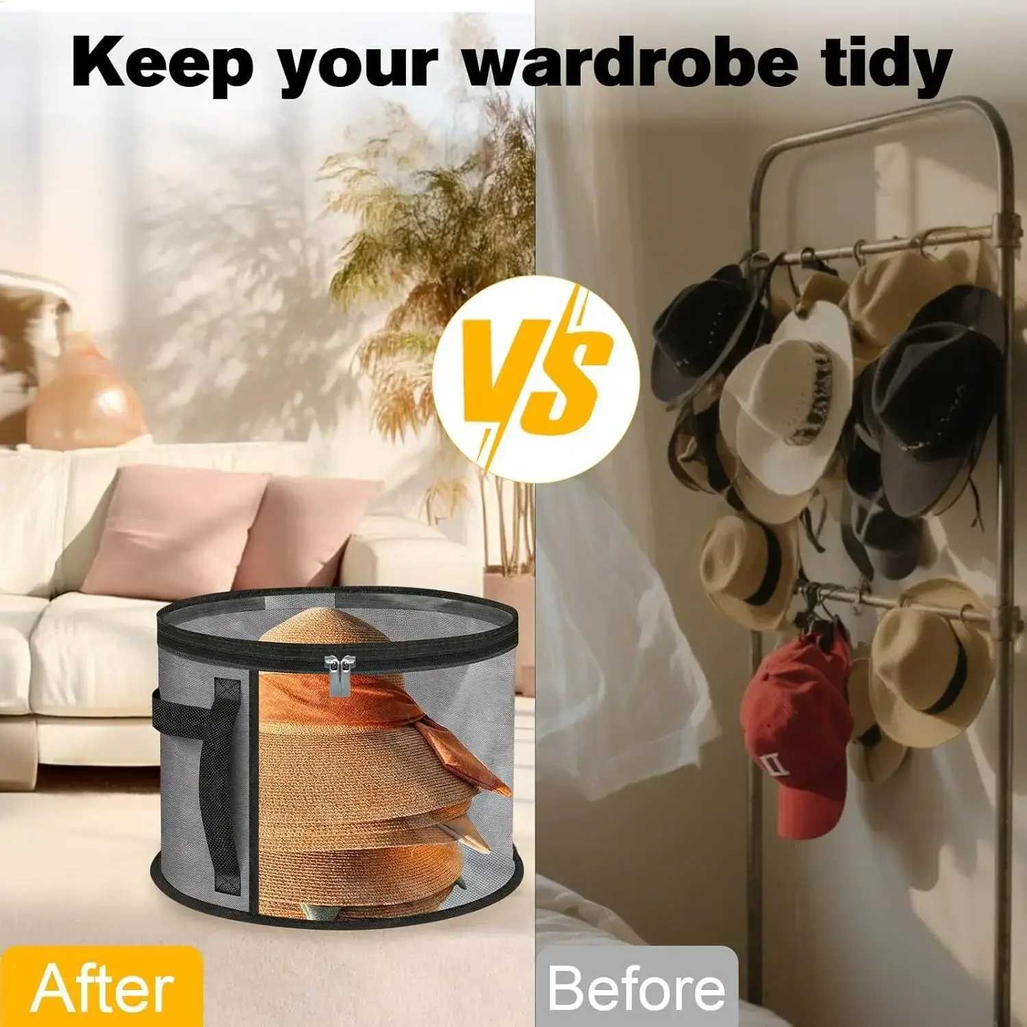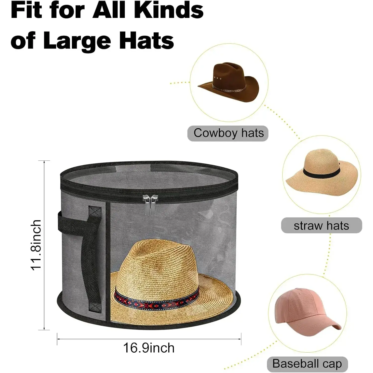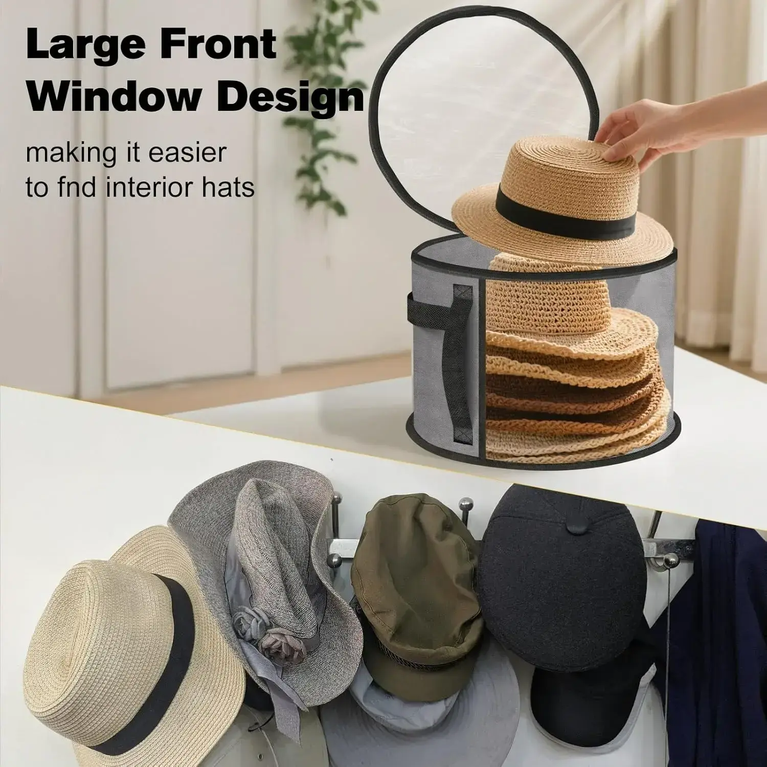 Extra Large Clear Hat Organizer for Travel and Wardrobe, Holds up to 7 Hats, Large Capacity Cowboy Hat Organizer, Oxford Cloth with Carrying Handle, Unisex Hat Box