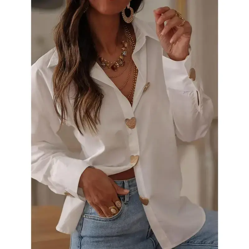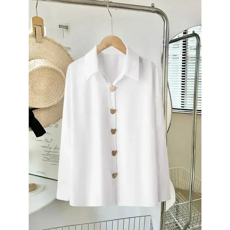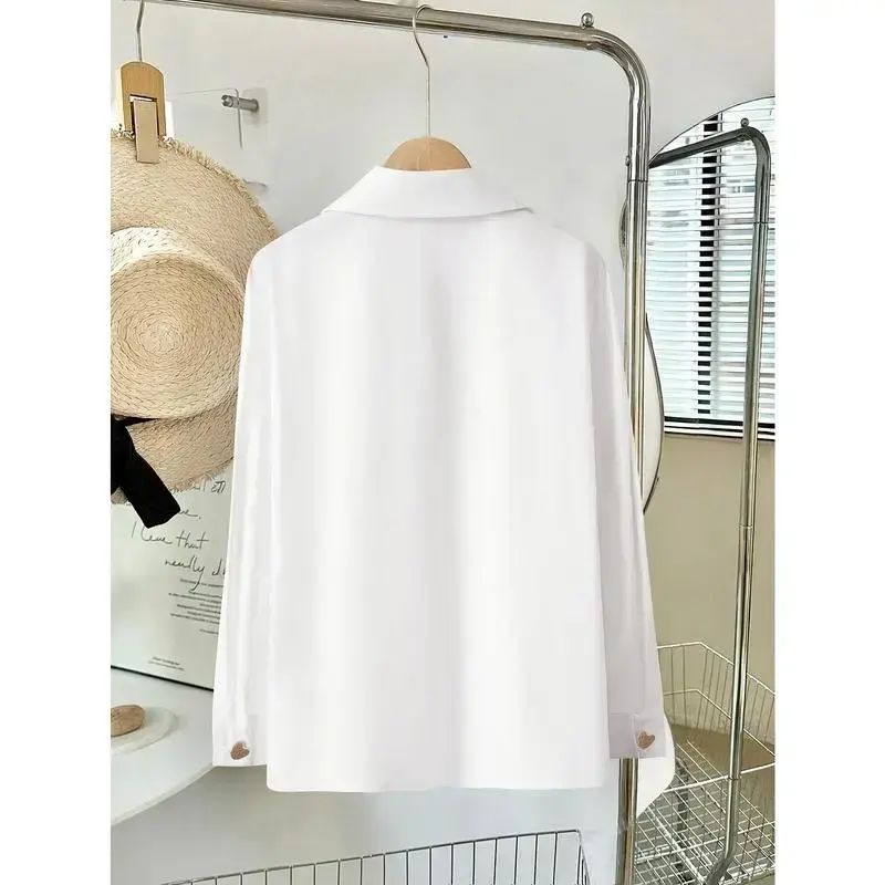 Ladies' elegant long-sleeved button-down shirt in plus size - Fixed color white, classic collar, non-stretch fabric, suitable for casual outings, spring and autumn wear, versatile top | Classic collar shirt | Non-stretch material