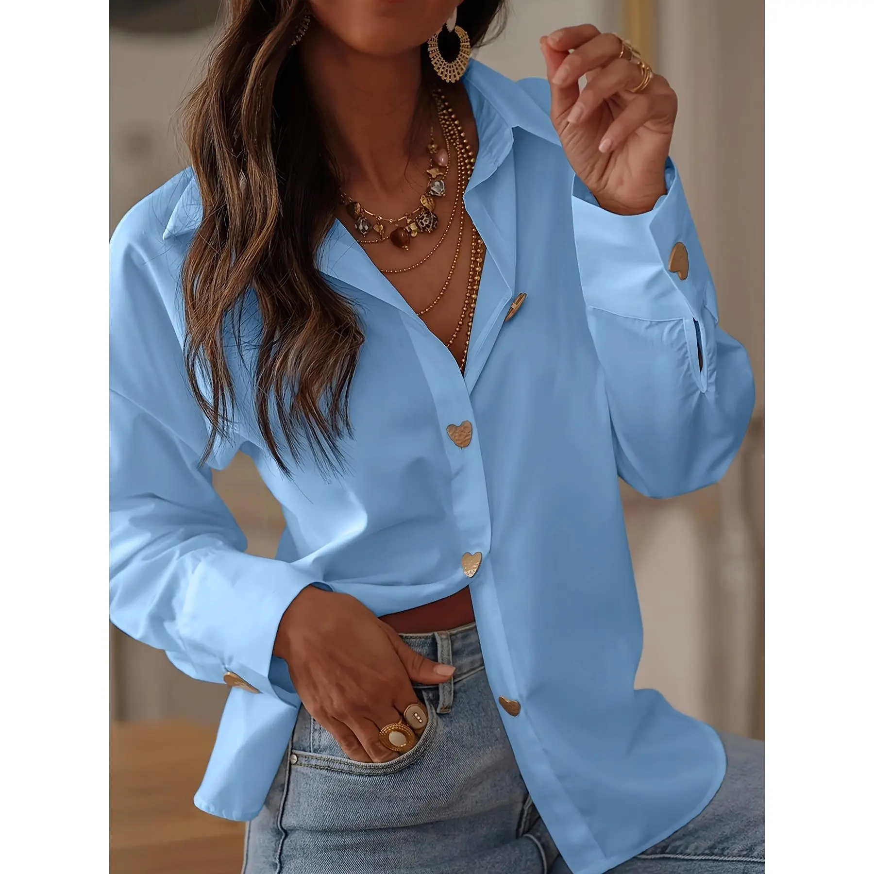 Material:Polyester Composition:100% Polyester Fit Type:H Occasion:Weekend Casual Style:Elegant Operation Instruction:Machine wash, do not dry clean Season:Spring/Fall Type:Shirting Placket Type:Placket Fabric:Non-Stretch Sheer:No Pattern:Solid color Details:Button Sleeve Length:Long Sleeve Printing Type:No Printing Weaving Method:Woven Collar Style:Lapel Item ID:EU5042335 Origin:Guangdong,China