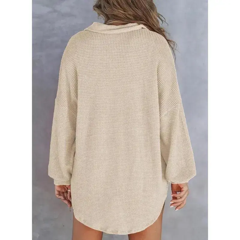 Women's Henley Shirts/?Elevate your wardrobe with our Henley shirts!??These women's tops are perfect for casual summer days.The long sleeves and V-neck design offer both comfort and style.Ideal for layering or wearing alone, these shirts are versatile additions to any collection.Embrace fashion with a touch of elegance./Oversized Comfort/? Oversized waffle knit shirt for women.This design ensures a relaxed fit, making it ideal for everyday wear.The knit material provides a soft texture against the skin.Enjoy the comfort of a well-crafted piece that complements your look effortlessly./Stylish and Practical/??Love Fashion, Love Beauty, Love henley tops for women. These shirts are a must-have for your summer collection. Their solid color and simple yet chic design make them suitable for various occasions. Stay stylish while staying comfortable in these long-sleeve V-neck shirts.