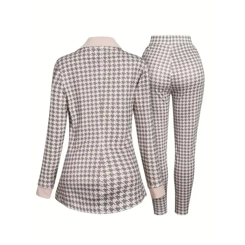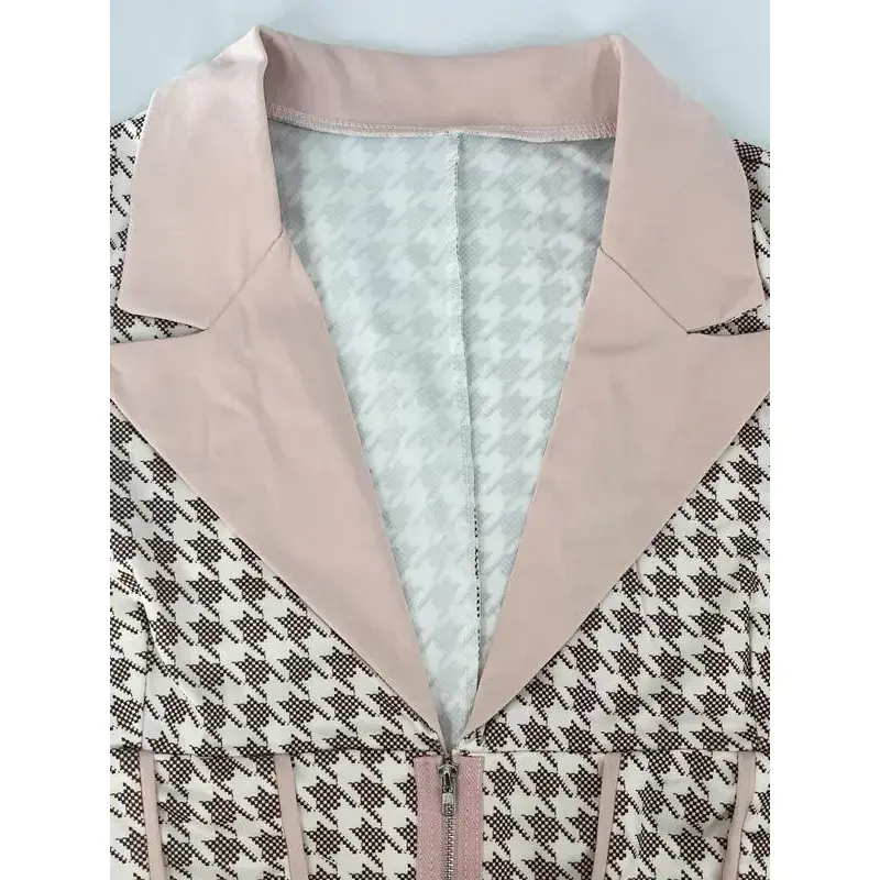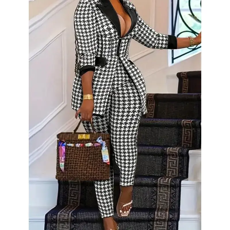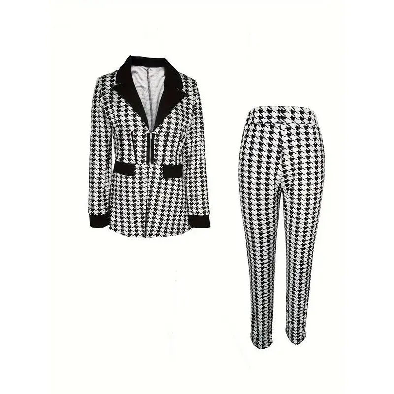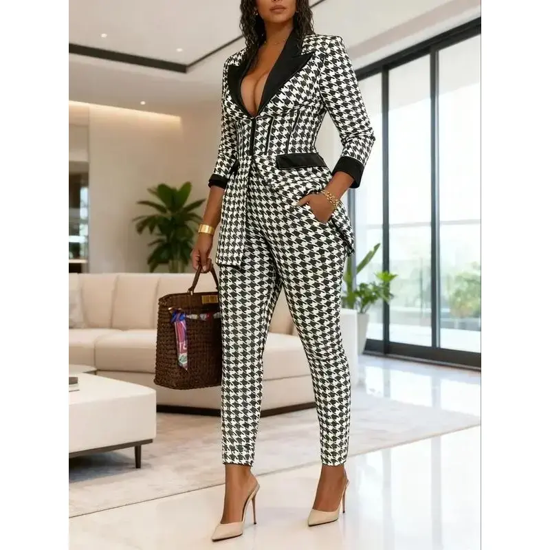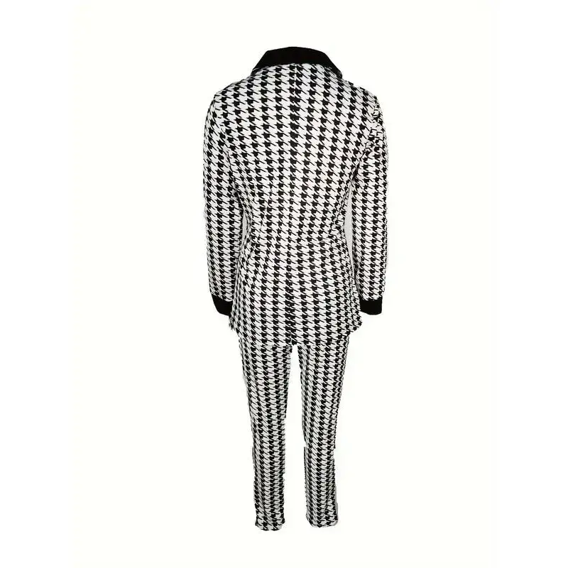 Two-Piece Set Women's Houndstooth Print Blazer & Skinny Pants, Elegant Fashion Casual Comfy for Daily Outdoor Wear, Ladies Clothes for All Seasons
