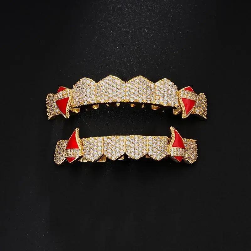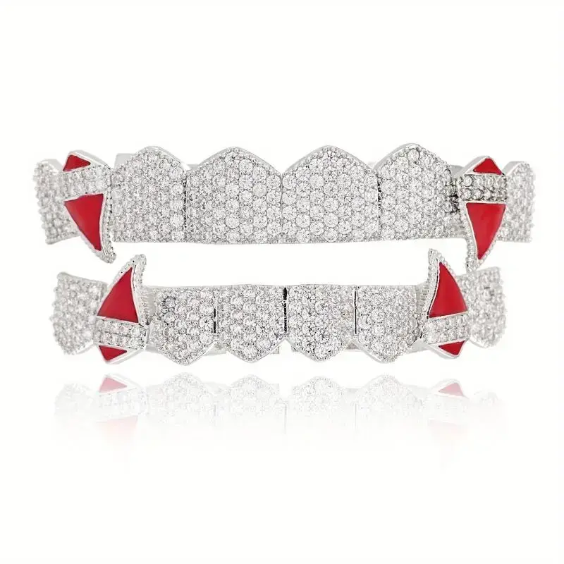 Vampire Bleeding Teeth Spicy, Spicy, Synthestic Zircon Dental Grill, 8 Top and Bottom Teem Grill, Halloween Hop Hop Tooth Jewelry