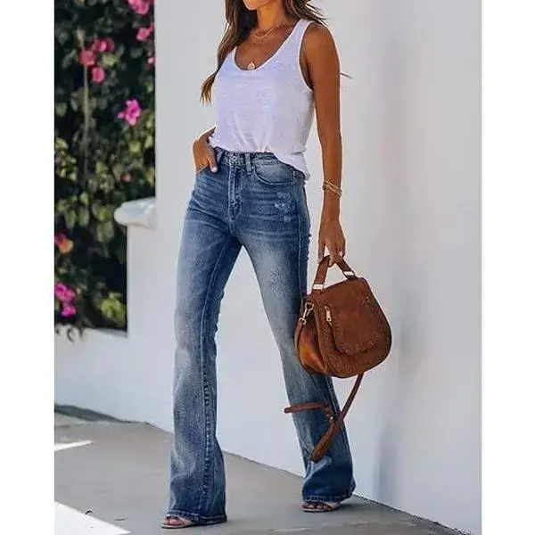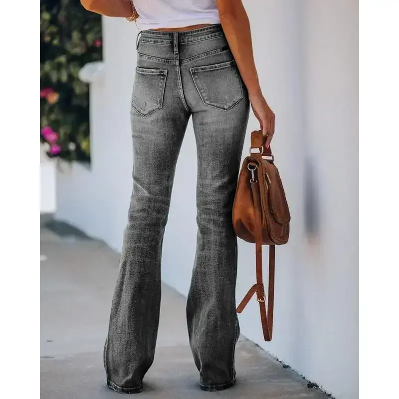 Womens High Waisted Jeans Flare Stretch Boyfriend Bootcut Casual Denim Pants Leg Suit Bottoms Womenswear